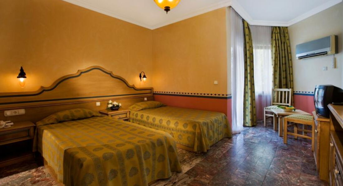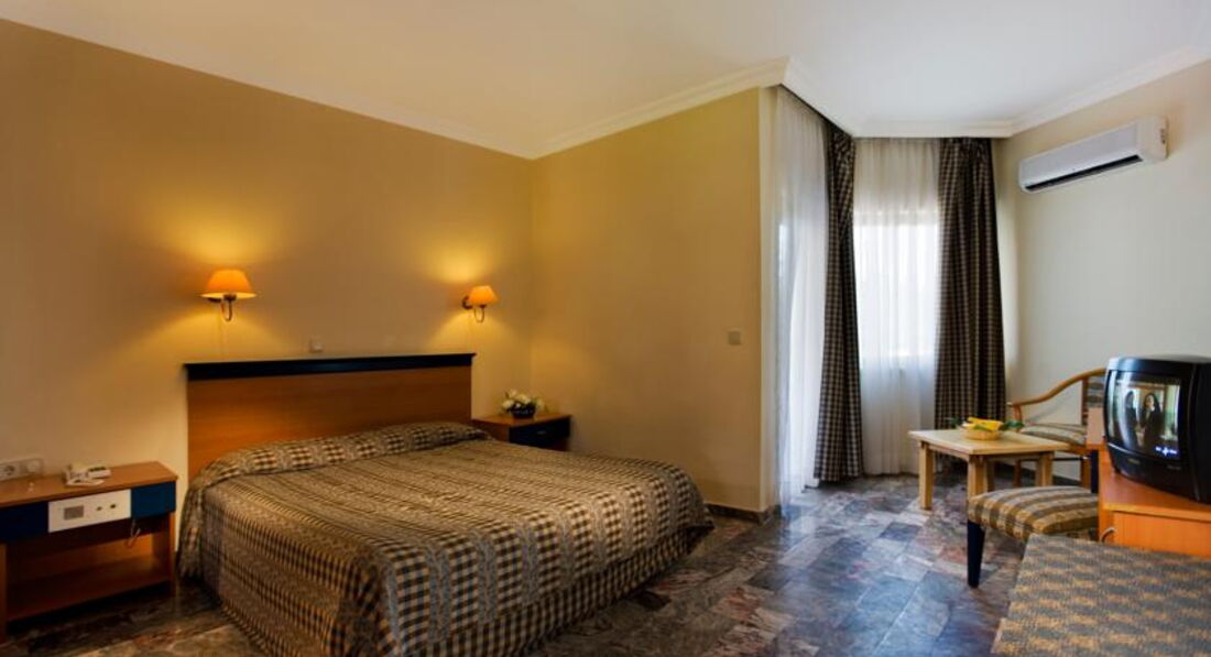 Разместили нас сразу по прибытии. Понравилось обилие зелени,хорошая планировка отеля.прекрасный пляж,великолепное чистое тёплое море и жаркое солнце! Фото отсмотренные в Инете не обманули нас. Информация о состоянии номеров тоже оказалась правдой,к сожалению. Состояние мебели и ковролина в номере оставляло желать лучшего. Но так,как в номере мы бывали мало,нас это не очень напрягало. Массаж(кстати рекомендую,там Дима-Шеф рулит),сауна,море и экскурсии свободного времени не оставляют. Питание нас вполне устроило. Меню достаточно разнообразное,много фруктов,овощей и прочей зелени. Посуда в баре и ресторане всегда была идеально чистой. Очень порадовало разнообразие сладкого стола. Понравился бар и презентации напитков "главным по напиткам". Десять дней пролетело быстро,оставив приятные,в общем-то,воспоминания. Если не заморачиваться идеальным порядком в номере,шикарной мебелью с белоснежными махровыми халатами,то этот отель вам понравится.