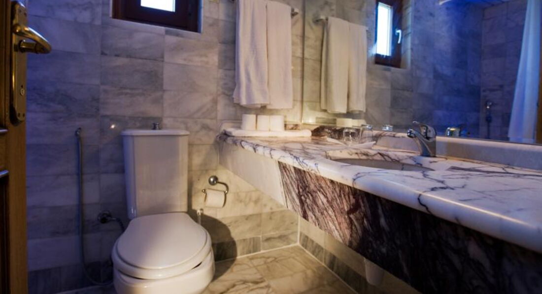 Реально маленькие((. Мебель новая, но уже покоцанная. Санузел тоже малюсенький, но зато мрамор, ни хухры-мухры, видно остался с хороших времён))). Кстати, маленький нюанс: не знаю, писали ли здесь уже про это или нет, но часть интерьера персонал перетащил из соседнего заброшенного отеля. Занавески, матрасы - всё оттуда. И продолжают перетаскивать))). Я по утру, стоя на балкончике, сама видела.