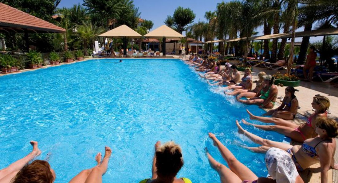 Отдыхали большой компанией)) бабушка с дедушкой и 4 внуков)) поскольку размещение в отеле только по 3 человека в номере, пришлось покупать 2 номера... дедушка+2 внука и бабушка+2 внучки))мы сами шумные и веселые, поэтому нам было весело. Питание нормальное, голодными не были. Много вкусной и разнообразной выпечки. Из фруктов в основном арбуз, дыня, виноград, яблоки. Хорошая анимация для детей. В большом бассейне аква аэробика и игры для взрослых. Есть бассейн для малышей и одна водная горка, которая работает по часам, но все желающие успевали покататься. Вообще то мы не сторонники сидеть возле бассейна, это и в Минске можно, главное это море. А море там шикарное. В августе уже достаточно теплое +28, дети, да и мы тоже, из воды не вылазили. Территория отеля не очень большая, но очень красивая и ухоженная, много зелени, цветы, разные пальмы. Размещают в 3-х этажных домиках, по 2 комнаты на этаже.Номера скромные, но мы ведь туда не на ПМЖ))) переночевали и на пляж..... днем очень жарко и все прячутся в номерах поближе к кондиционеру. Wi-fi работает плохо и только в одной зоне, возле ресторана. За 15 дней только 3 раза и переговорили: долетели, устроились... все нормально, отдыхаем..... завтра вылетаем, встречайте)) Отель и отдых понравились.