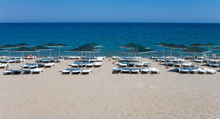 Пляж: власний, піщано-гальковий, 250 м від готелю, довжина 50 м, кабінки для перевдягання, душ; пляжні рушники на пляжі – депозит; біля басейну – безкоштовно; парасольки та шезлонги на пляжі та біля басейну - безкоштовно; матраци біля басейну – безкоштовно.