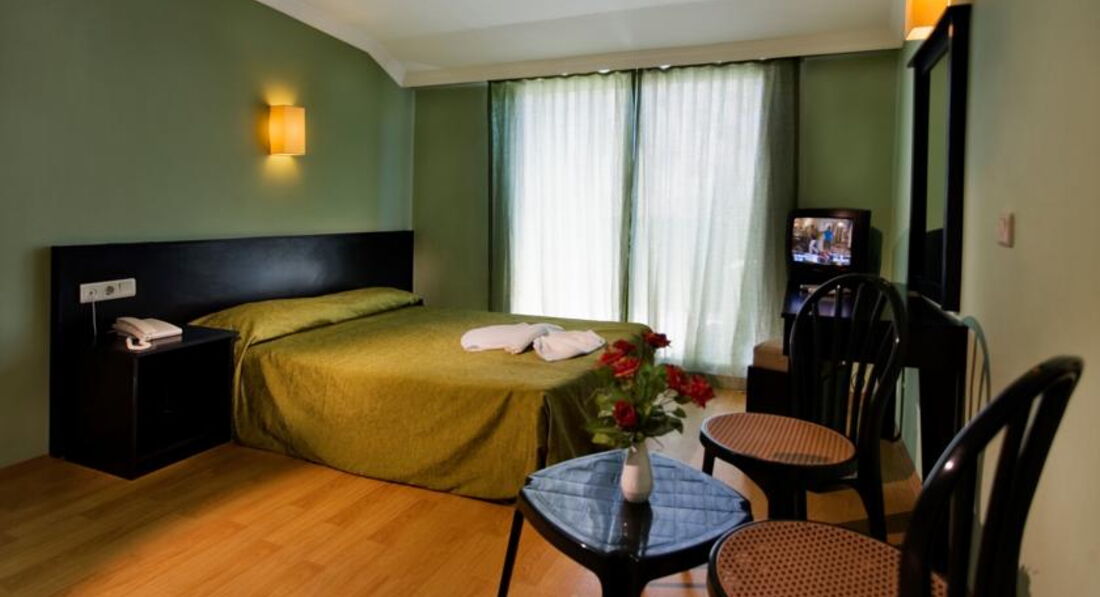Впечатления об отеле прекрасные!Ехали с мужем за границу впервые,до этого отдыхали только у нас в стране,Украине,поэтому хочу сказать тем ,кто вечно ворчит и жалуется на что-то:Приезжайте к нам на отдых у моря,за те же деньги, что и в Турцию,только после этого и трешка в Турции вам покажется раем!!!!Я в восторге от этой страны ,этой красотищи вокруг!Сервис и обслуживание в отеле,как и во всех магазинах шикарны(торговались со всеми от души,им это нравилось и мы были в восторге).Очень приветливые люди везде,где мы были!Может потому ,что мы были на позитиве,и не замечали никаких мелочей,короче нам все нравилось и мы не придирались ни к чему!Во первых мы приезжали не сидеть в отеле и не киснуть у бассейна,а побывать на экскурсиях !Поэтому я и советую всем своим знакомым и друзьям,что зачем платить больше,если ты только позавтракать-ужинать и переночевать в отеле .а остальное время куда-то спешишь ,чтоб что-то увидеть!У нашего туроператора мы поездки на экскурсии не брали,дороговато было,купили сразу три у прекрасного парня Мусы,недалеко от отеля ,сделал нам скидку хорошую и мы побывали в Паммукале (там были включены шопинги на винный завод ,кожаную фабрику и огромный магазин постельных принадлежностей и одежды,обед),ездили на форелевую рыбалку(получили удовольствие от ловли рыбы и нас потом очень вкусно кормили обедом ,где была баранина и запеченая форель ) и была у нас поездка по морю на корабле(впечатлений масса,как сказал мой муж: самая классная экскурсия и самая дешевая)!На всех экскурсиях кормили,это входило в стоимость поездки,и это впечатляет,у нас такого нет!Притом мне везде нравилась еда!Вот все жалуются что в отелях нет мяса.Ну не едят турки мясо так, как топчим его мы!Но там есть всегда вкуснейшая рыба,рис,сыры и овощи(обожаю особенно запеченные)!Да,колбаса у них плохая,не ешьте,кто же заставляет!Но там прекрасные десерты!Я такой вкуснятины не ела никогда!В магазинчиках дают попробовать лукумы,при этом тебя никто не заставляет их покупать!Территория отеля меня вообще порадовала своей красотищей,все цветы что у нас в горшках-у них на клумбах!Даже фикусы больше моего роста!Номер у нас был с видом на горы,в номере чисто,имелся и холодильник.Я очень скучаю за этой страной,ее прекрасными горами,,красивенным морем ,ровными дорогами и приветливыми людьми!!!!Собираемся еще приехать туда,но уже с детками!