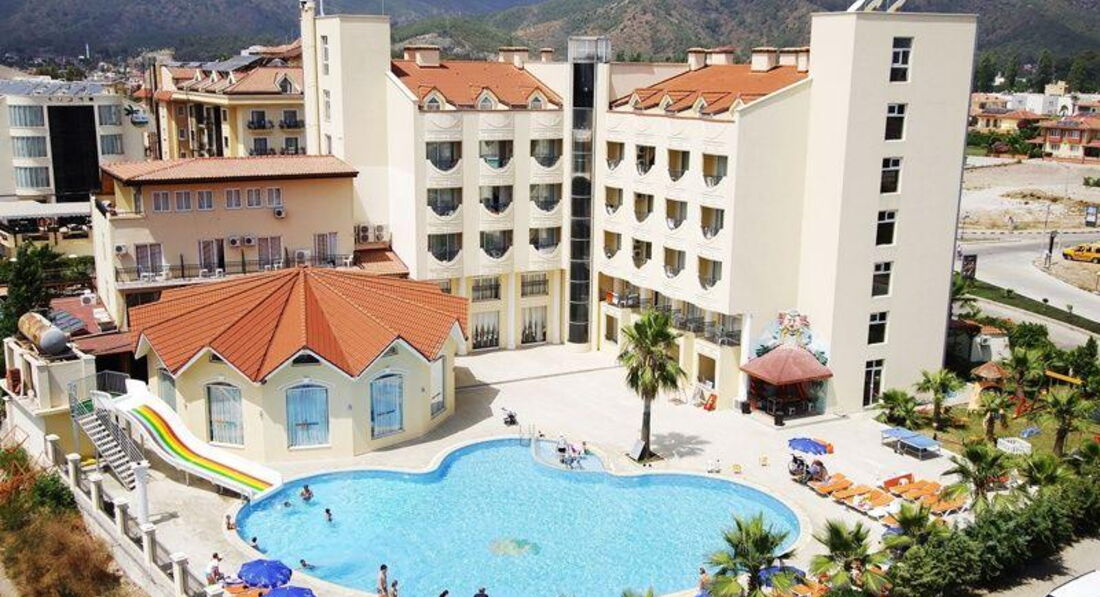 отдыхали ровно 14 дней с 31 июля по 14 августа. Заселили конечно не сразу,мы приехали к ним в пол 11 утра,а заселение начинается только с 2 часов,тяжелова-то было...но мы стерпели,ведь у них такие правила,нам должны были дать один трехместный номер и один одноместный,но так как у них отдыхала семья,чей рейс задержали на два дня,свободных НУЖНЫХ номеров не оказалось,ну знаете это дело случая. Нас заселили в один 4-ехместный номер на два дня...после расселили как положено,за все эти недобства нам два раза приносили вино с фруктами=)). Что касается еды...острая..но вкусная...тем более надо самим смотреть что на ваш вкус, в целом там все очень вкусно и сытно (много разых гарниров,салатов,овощей,фруктов(арбуы,дыни,виноград,сливы,яблоки),горячих блюд))..Завтрак,обед,полдник,чаепитие(очень вкусная выпечка) и ужин. Не понимаю тех людей,которые пишут,что кормешка плохая,мало мяса или все пережарено. ЕДА-ОТЛИЧНАЯ.Подают одновременно и мясо, и курицу, и рыбу Бар-все бесплатно,но только два стакана в руки)).Номера: состояние отличное,уборка каждый день. Каждый вечер детская дискотека,шоу от аниматоров и на последок дискотека для взрослых.Для молодежи-выезд на пенные дискотеки и в клуб кемера "РЕД РУМ"-советую в нем побывать)).Детям там не скучно,так как детская анимация очень хорошо выполняет свою работу,что касаемо взрослой анимации..все тоже приемлемо..каждый день у них по расписанию водная гимнастика,водное поло. Скучать будет некогда))) Море. Море очень и очень соленое, пляж галечный,лежаков хватает на всех,также на пляже бесплатные напитки,наподобе соков. Нам все очень и очень понравилось,жалко было уезжать,в следующем году рассчитываем поехать снова в Турцию..и я была бы не против отдохнуть в этом же отеле))