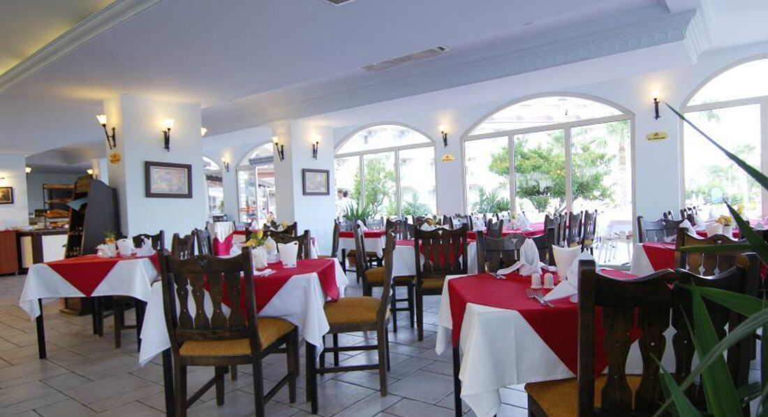 Честно говоря, здесь смешанные чувства, т.к. ранее я отдыхала в отелях выше уровнем и это моя первая четверка и я понимала, куда я еду и какой будет уровень обслуживания. Голодными вы точно не останетесь!!! Выбор блюд не такой шикарный как в дорогих пятерках! Утром, есть и молочная каша и вареные яйца и глазунья и теплые булки и кофе машина (кофе машины везде в отеле). Сыры, брынзы, арбузы, дыни, апельсины, грейфрукты, сливы, яблоки всегда. На обед я думаю вы всегда найдете курицу, макароны, рис. Не забывайте заглядывать на веранде ресторана в пекарню, там всегда что-то найдется поесть и утром и в обед и вечером. По понедельникам на ужин тунец, только надо прийти к началу ужина, будете позже не достанется, вообще старайтесь приходить в ресторан вовремя, да, вы можете столкнуться с большим количеством народа и сложно будет найти столик, но это гарантия того, что самое вкусное вам достанется. Наши туристы смотрятся диковато, когда набирают в футболки по полтора килограмма апельсин. И половина ресторана несут в номера. Проверяйте качество помытой посуды -иногда вы можете столкнуться с плохо помытой посудой и столовыми приборами. Заставляйте официантов уделять вам внимание, если вас не устраивает чистота стола попросите повторно его убрать, помните вы в отели 4 звезды, это не отель премиум класса! Хотя управляющий отелем всегда бдит за работой сотрудников и ресторана и самого отеля, косяки бывают. Сама видела как он вставлял пистоны официантам за плохую работу.