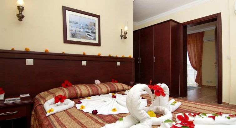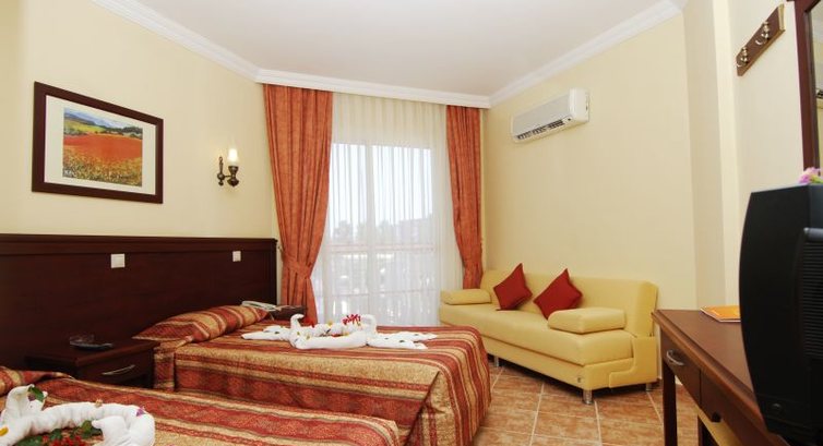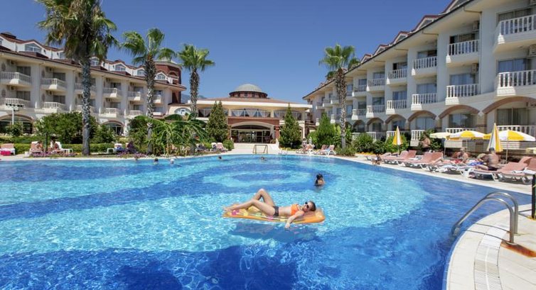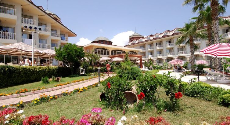 Бари та ресторани: Saray Restaurant: Сніданок з 07:00-10:00, Обід з 12:30-14:00 та Вечеря з 19:00-21:00. Шведський стіл. Ресторан розрахований на 300 осіб. Рибний ресторан: години роботи з 19:30-21:30, 25 місць, необхідна попередня резервація. Лобі-бар Lale: годинник роботи з 10:00-22:30; Бар біля басейну: відкритий з 10:00-22:30, пропонуються місцеві напої за системою "все включено", закуски з 14:00-16:00, час з 17:00-17:30, імпортні напої платно; Бар на пляжі: відкритий з 10:00-17:00, пропонуються лише прохолодні напої; Диско-бар: відкритий з 23:00 до 02:00, всі напої платно.