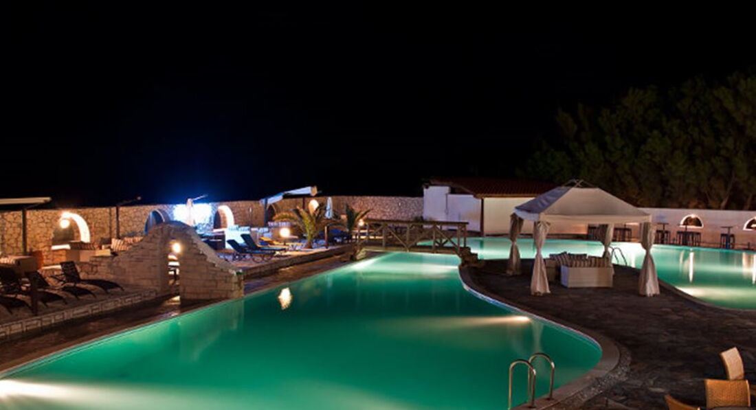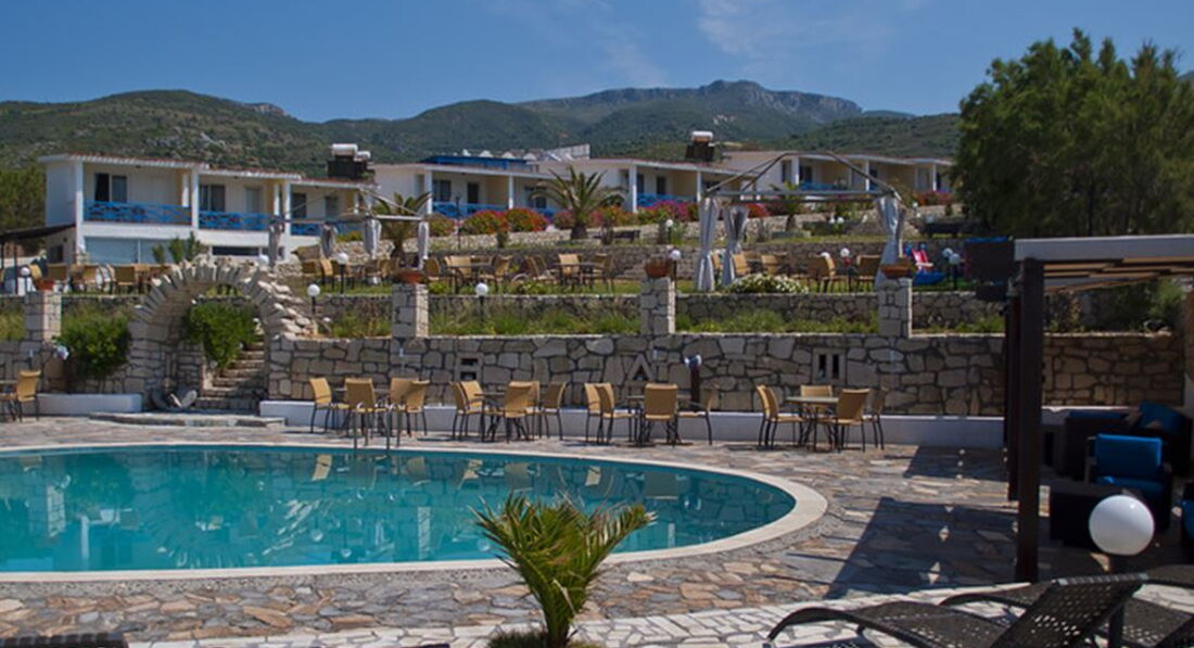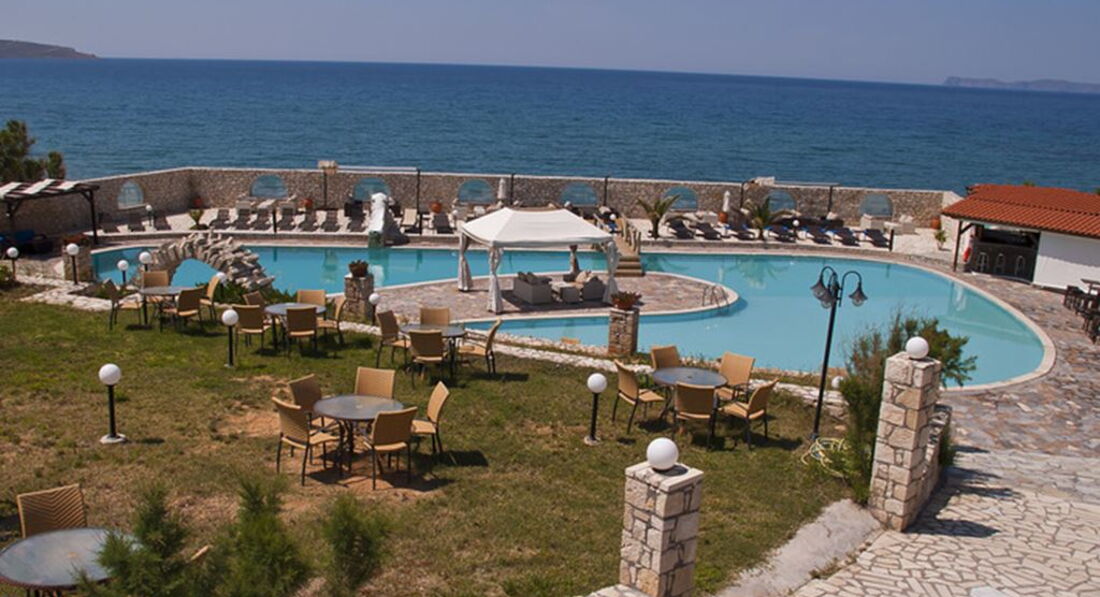 Величезна територія, басейн, таверна, бар, прямий вихід до моря, якісне обслуговування. Складається з центральної будівлі та бунгало.
