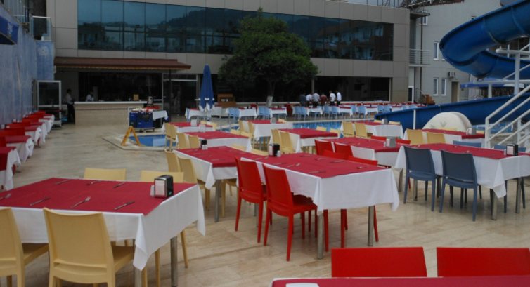Если Вы бывали во многих других отелях и разных странах, особенно в Европейских "тройках", то здесь намного хуже чем там. Здесь практически отсутствует какой-либо выбор мяса. Самое лучшее мясо тут-это курица. Бывает тушёная, на гриле, но не всегда. Пару раз была рыба на мангале. Такие гарниры, как рис, картошка, макароны, есть всегда. Правда макароны пустые (не заправленные фаршем) есть невозможно, они пропитаны каким-то жутко вонючим маргарином. С овощами проще: помидоры, огурцы, баклажаны, кабачки, перец и много зелени. С этим проблем нет. Клубнику давали, но её быстро разметали, и добавки уже не было. Со сладостями не очень: если что-то и есть, то до ужаса приторное. Лучше купить немного лукума в ближайшем магазине. ПРО АЛКОГОЛЬ. Здесь всего 2 бара-один работает в режиме работы ресторана, другой напротив ресепшена. По системе "Всё включено" доступно пиво, вино, джин, водка, ракия и разные коктейльные сочетания с сиропами. Всё с 10 до 23-00. Вино смело пейте, особенно белое, красное хуже по качеству. Пиво тоже хорошее. С крепкими напитками ...тут как душа требует. В общем, напиться этими напитками вряд ли получится, только если вы не будете непрерывно хлебать.