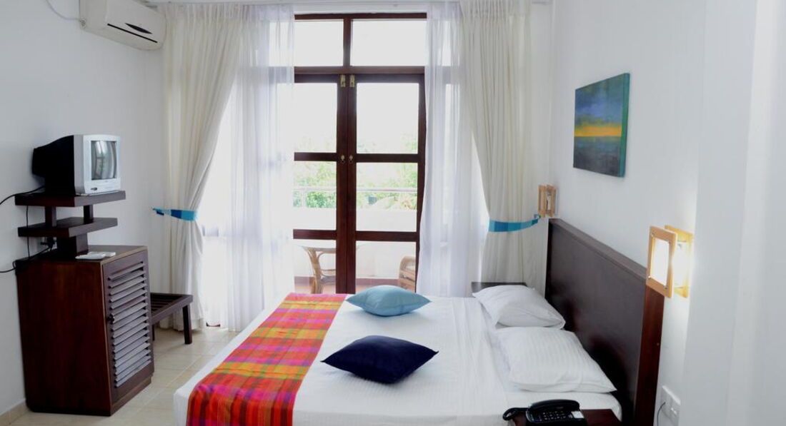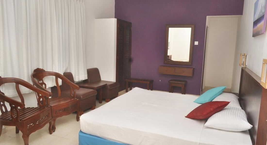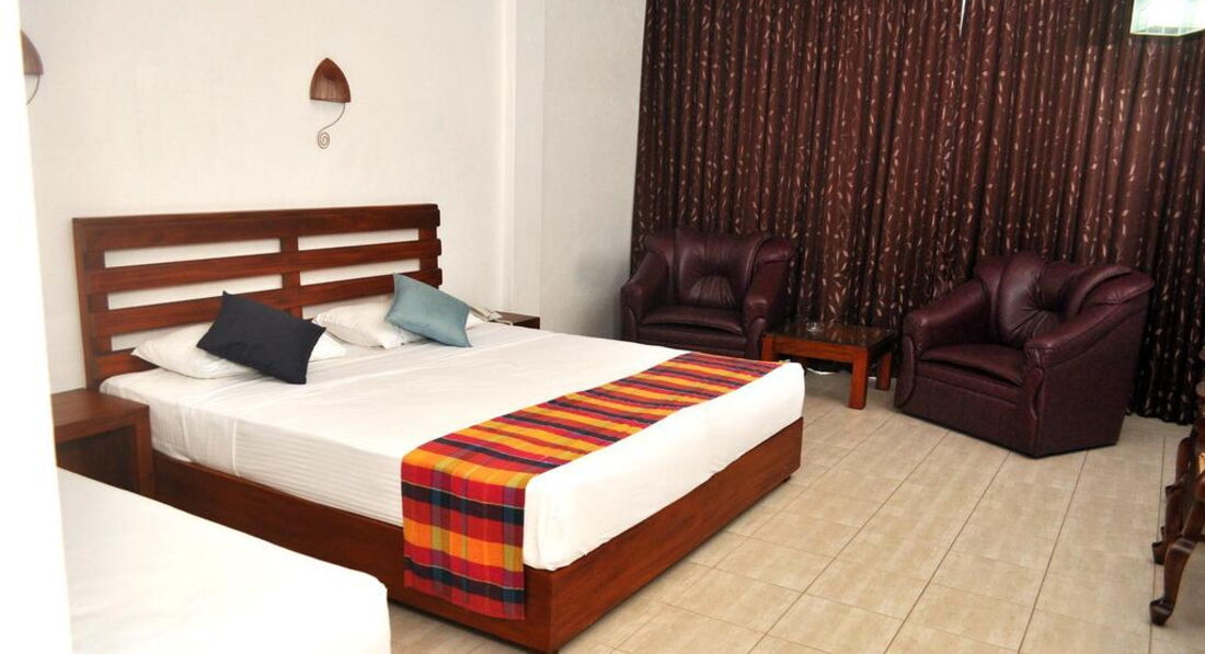 Для 2* просто замечательный отель... были приятно удивлены. Внимательный и вежливый персонал и хозяин( еще бы говорили по-русски-цены бы им не было!). Номер чистый-жили в отдельном корпусе с прекрасной лужайкой и садиком с качелей. Бассейн чистый-вода теплая. В первый день приглядывались к паутинкам-потом поняли- тут везде не заморачиваются на супер чистоте. Завтраки однообразные, но очень сытные. Не смущайтесь пообщаться с отдыхающими- подскажут где кормиться и *поиться* подешевле)). Воду в номер положено каждый день по 0,5л на человека- но надо напоминать- *забывают)) Вайфай бесплатно.. Телевидения на русском языке вроде бы нет, но и не переживали по этому поводу.. На природе больше были. Нет фенов- ну и фиг с ними)) Нет комаров и всяких живчиков- вот главное. Отдых просто райский. Поездки дальние- очень утомляют- поэтому выдержали только одну экскурсию.. Мечтаем вернуться вновь на Шри-Ланку.
