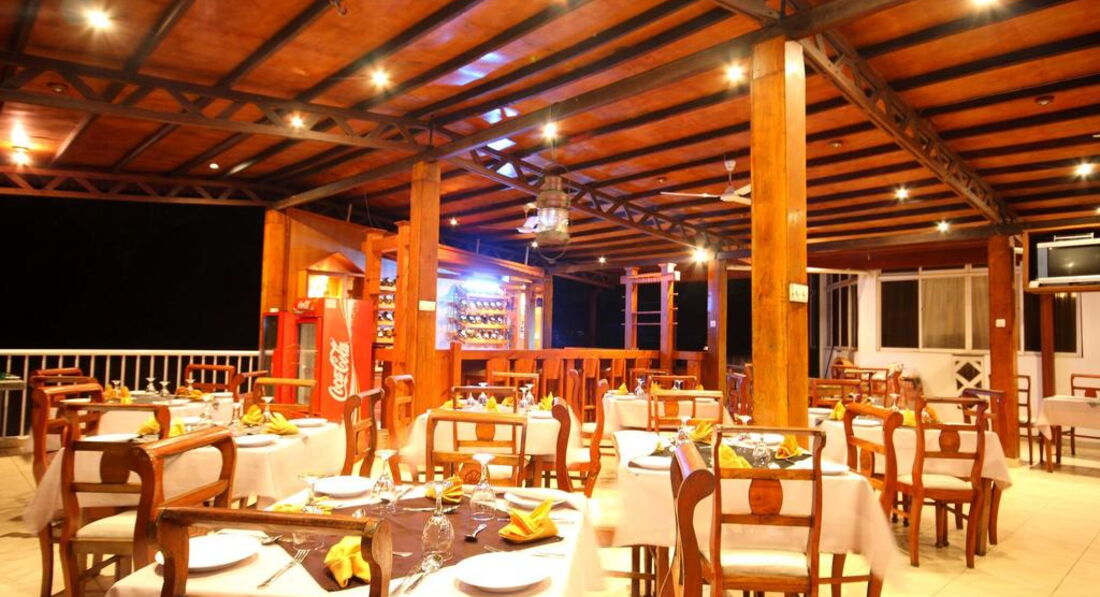 В отеле было очень мало людей - на ужине я всегда был ОДИН в огромном зале ресторана. Поначалу было немного неудобно от этого, особенно когда приходил менеджер отеля и пристально наблюдал за моей трапезой)) Ну понятно, что наблюдал он за работой повара и официантов, но все же.. Потом привык, мужик он кстати нормальный, адекватный и честный. По английски понимает хорошо, как и повар.