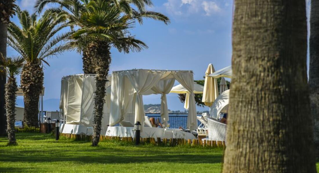 Отель очень достойный. Отличная кухня. Но есть большой минус, о котором почему-то никто не говорит. Пляжа, как такового нет. Есть бетонные платформы, с которых спускаются ржавые лестницы в воду. И если вы любитель морских купаний, это удобство еще то...:(:( При этом, внизу под водой острые камни и морские ежи. Выводы делайте сами. ПЛЯЖНЫХ ПОЛОТЕНЕЦ НЕТ.