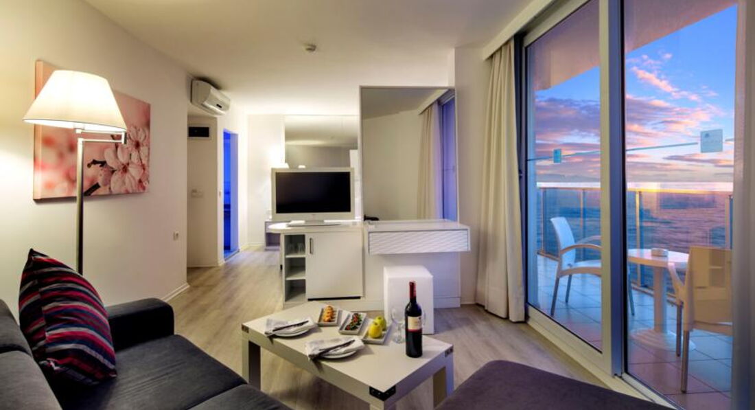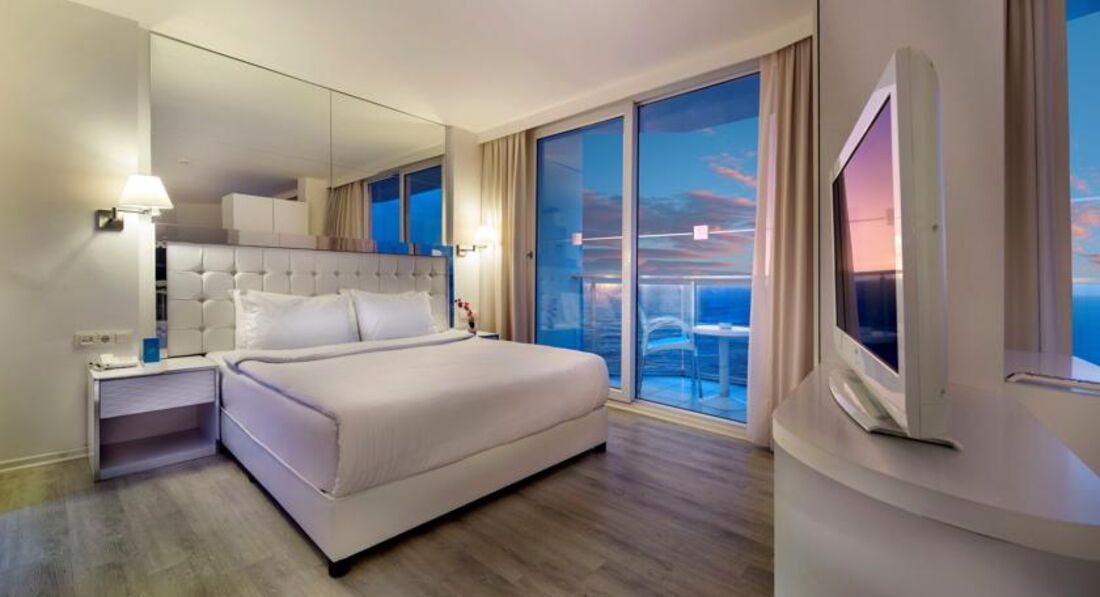 дорога от аэропорта до отеля у нас заняла 2ч15мин,утомило,в отель прибыли в 11.45,браслеты одели в 12.30.к обеду.а в 14 дали ключи от номера.номер был на 5 эт с видом на море!красота!ложились спать и просыпались под шум прибоя и курлыканье чаек.сам номер маленький,но уютный,и всё необходимое исправно работало.по телику 1 рос.канал.убирали каждый день.сейф не брали,все вещи лежали свободно,ничего не пропало,не исчезло.