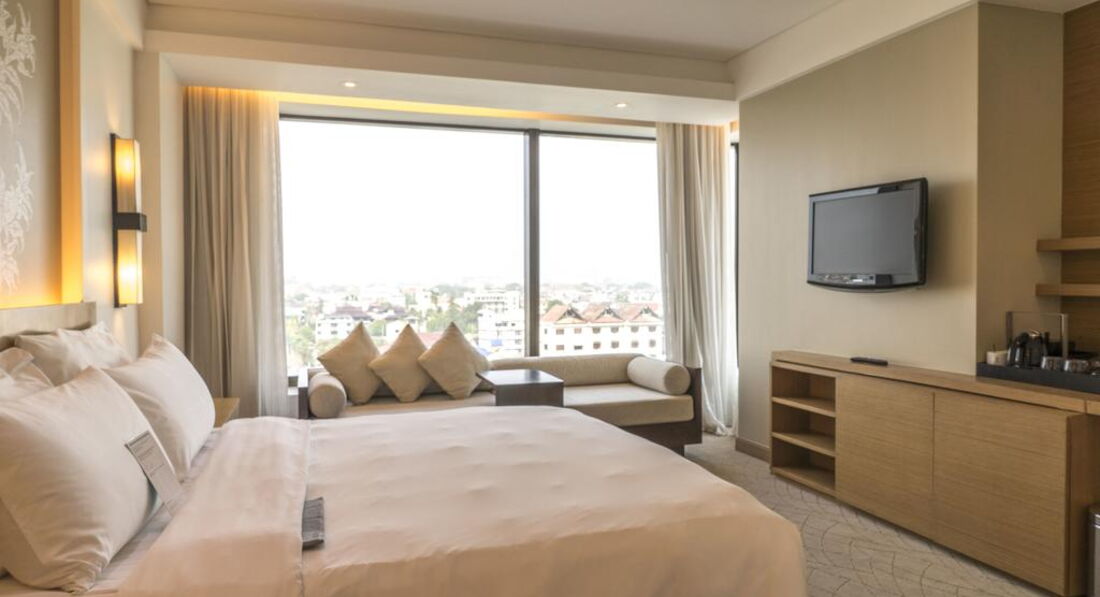 Гідний рівень сервісу, якісне харчування. Є можливість приймати у готелі великі конференц-групи. 384 комфортабельних номерів, оформлених в ультрасучасному стилі, з видом на гори та місто