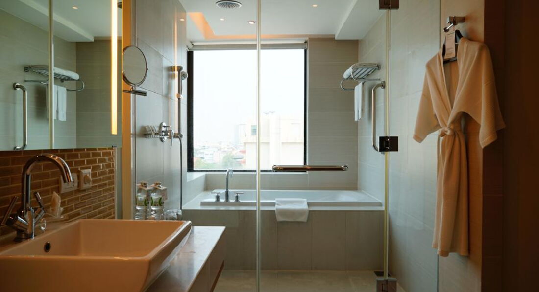 - сейф (безкоштовно) - набір для приготування чаю/кави - кондиціонер - ванна - CD/DVD-програвач (тільки у Suite) - телефон (з автовідповідачем) - радіо - капці - фен - ТБ: супутникове та кабельне - міні-бар - душ (роздільний) - LAN (безкоштовно) - халат Територія та послуги: - бізнес центр - перукарня - автобус до центру міста (безкоштовно; за розкладом та запитом) - спа центр - хімчистка - 2 бари - 11 конференц-залів (5–1050 осіб) - 2 ресторани (тайська, інтернаціональна та італійська кухня) - пральня - басейни (відкритий; шезлонги та рушники безкоштовно) - 2 джакузі (гаряче та холодне) - Wi-Fi (безкоштовно) - магазини Розваги та спорт: - сауна (безкоштовно) - парна (безкоштовно) - аеробіка безкоштовно (за розкладом) - прокат тенісних ракеток та м'ячів (платно) - прокат DVD-фільмів - Висвітлення тенісного корту (платно) - тренажерний зал (безкоштовно) - йога безкоштовно (за розкладом) - тайський масаж (платно) - велосипед гірський (платно) - тенісний корт (безкоштовно) Для дітей: - відділення для дітей у басейні для дорослих - послуги няні (за запитом) - Малюки від 8 місяців до 3 років: дитяче ліжечко (за запитом) Живлення: - BB - HB До оплати приймаються кредитні картки: Visa, MasterCard, American Express, Diners Club, JCB.