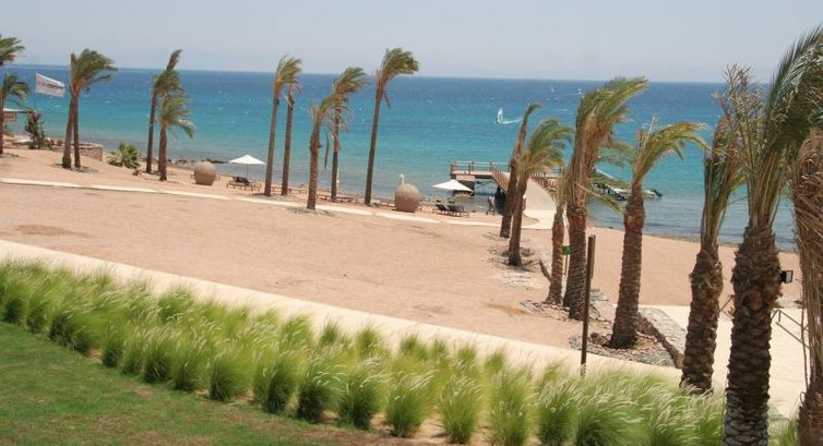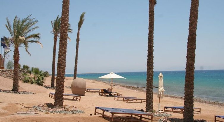 Превосходный отель, один из лучших в Египте. Живописный вид на горы в дымке и бирюзовое море. Каскады бассейнов с морской и пресной водой (подогреваемые), бесплатные сауна, джакузи и турецкая баня. Элегантные интерьеры номеров, ресепшн и ресторанов, исключительно внимательный и вежливый персонал. Белоснежное белье и полотенца в номерах, халаты, хорошего качества умывальные принадлежности. Фитнес-центр небольшой, но с новыми тренажерами и прекрасным видом на море. Пляж, к сожалению, не песчаный, без обуви ходить сложно, в море босиком тоже не войти - ноги покалечишь. Если владельцы отеля когда-нибудь вложатся и привезут песок на пляж, будет здорово. Ну, зато для дайверов настоящий рай, они в Дахаб съезжаются со всего мира.