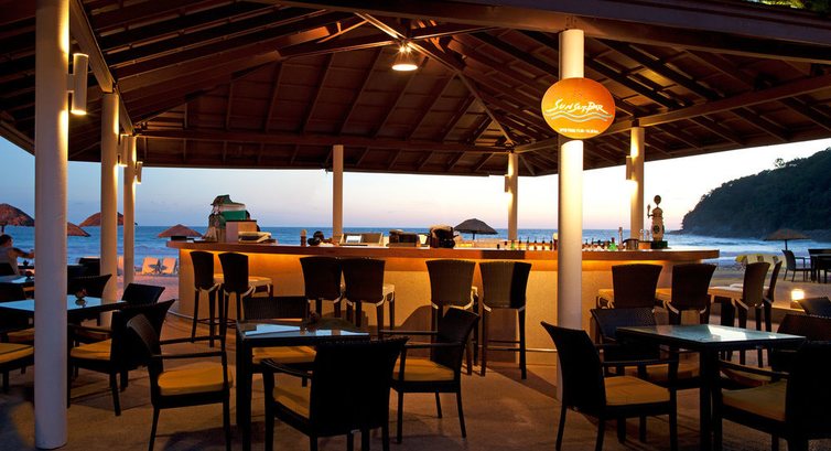 Отдельно заслуживает пляж - вот, ради чего сюда нужно ехать, пологий вход, есть волны, но покататься на них - удовольствие, чистая и прозрачная вода, несколько пляжей, есть на траве, песке, пляжи не загружены. Есть вызов официанта: принесут фруктов или кокосы. Пляж обрамляет скалы, нет ярковыраженных отливов и приливов.