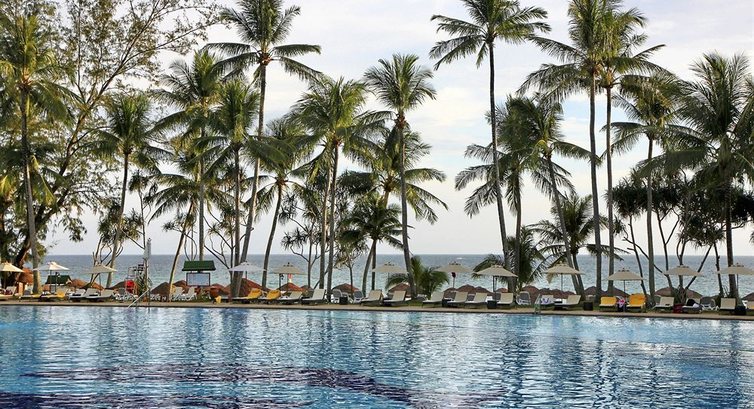 Сама территория отеля небольшая, компактная ухоженная и зелёная, тут без нареканий. Три больший бассейна с островками круглых лежаков кроватей и мягкими матрацами - прекрасно! И удобно. Сама фишка отеля - закрытая территория и собственный пляж с бухте. Это несомненный плюс особенно при отдыхе с детьми., очень понравилось море хоть и были волны., лежаки что возле бассейнов, что возле моря всегда свободные, полотенца чистые и без запаха. Не видел что бы убирали сам пляж но грязным его назвать никак нельзя. Из за горы бухты солнце довольно рано садится примерно в 17:30 по местному времени и лишает возможности любоваться прекрасными тайскими закатами.