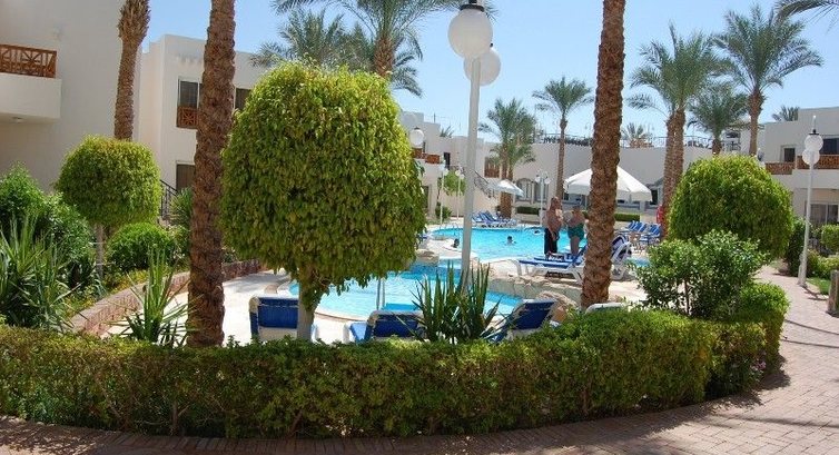 Отдыхать поехали вместе с подругой на 10 дней. В Египте не впервые, до этого тоже были в отелях 4*, есть с чем сравнить. Приехали в отель после 19.00. Заселили нас мгновенно. Номер большой, много мебели, все аккуратно. Плохо только, что нет балкона, нам он необходим, чтобы вещи сушить. Как оказалось позже, у соседей тоже нет балкона, да еще и вид на свалку. Поэтому мы не особо расстроились, просто вынесли на улицу стул и сушили все на нем. Сразу заметили, что нет полотенец, туалетной бумаги и отваливается кран. Сообщили на ресепшен, у нас спросили номер комнаты и сказали, что полотенца принесут только завтра при уборке. Утром перед морем ходили просить полотенца на ресепшен, девушка сказала обратиться к полотенце-менеджеру, пошли искать его, в указанном месте его не оказалось, сходили на море со своими. Позже нам дали два пляжных полотенца, решили их оставить в номере, и не зря, в номер нам дали два маленьких полотенца явно не для тела. Поэтому на пляже пользовались своими, в номере пляжными. Номер убрали два раза в первые дни, потом приходили либо когда мы пришли с моря перед обедом и моемся, либо не приходили вообще. К концу отдыха в номере был целый пляж. Туалетная бумага так и не появилась, пришлось брать в общественном туалете, благо там много рулонов всегда. В один из дней капало с потолка, сообщили на ресепшен, к нам так и не пришли, капать перестало. Затем через пару дней снова лужа на полу, сообщили повторно, к нам пришли работники, покрутили кран в ванной, постучали по потолку, капать перестало. Территория маленькая, довольно уютная. Есть терраса и место для столов на улице с баром, но ничего не функционирует, а жаль. Анимации нет никакой, развлекали себя сами, ездили на экскурсии и гуляли. Бар работает с 10 до 22. Закрываются они еще в 21.55, а вот открыться вовремя не могут, до 12 можно даже не пытаться взять попить. Некоторые бармены не понимают, что ты от них хочешь, например, вместо джина дают лед. Еда неплохая, если приходить к открытию ресторана. Напитки наливать надо самостоятельно из бутылок. Молока часто не было, кофе растворимый, чай только черный в пакетиках. На завтрак есть почти нечего, йогурта, выпечки и блинов нет. Только хлопья без молока и мини-омлет. На обед всегда фри, мясо, птица, рыба. На ужин запеканки, макароны, те же мясо, рыба, птица. Фруктов мало: безвкусный арбуз и дыня, пирожные вкусные. В обед и ужин голодными не ходили. Но вот перекусов нет никаких. Могли бы и поставить на стол возле бара то, что осталось. Пляж находится близко, мест на лежаках всегда хватало, несмотря на то, что ровно в 10.00 ежедневно приезжали арабские семьи и весь день находились на пляже нашего отеля. Море грязное, мы уходили плавать на пляж другого отеля, там почище и рыб побольше, есть что посмотреть. На пляже особо не пристают, экскурсии и массаж не навязывают. Замотанные с головы до ног женщины презрительно смотрят, а их мужчины захлебываются слюной. Бесплатного бара на пляже нет, приходилось ходить в отель попить. В один из вечеров был ужин на улице, мы до сих пор не поняли в честь чего, столы расставили вокруг бассейна, была еда на гриле, танцы живота. Вот бы так каждый день. Отелю явно не хватает хорошего управляющего, можно такую конфетку сделать! Для того, чтобы просто есть и спать, отель подходит замечательно, а так 3 с минусом и не больше.