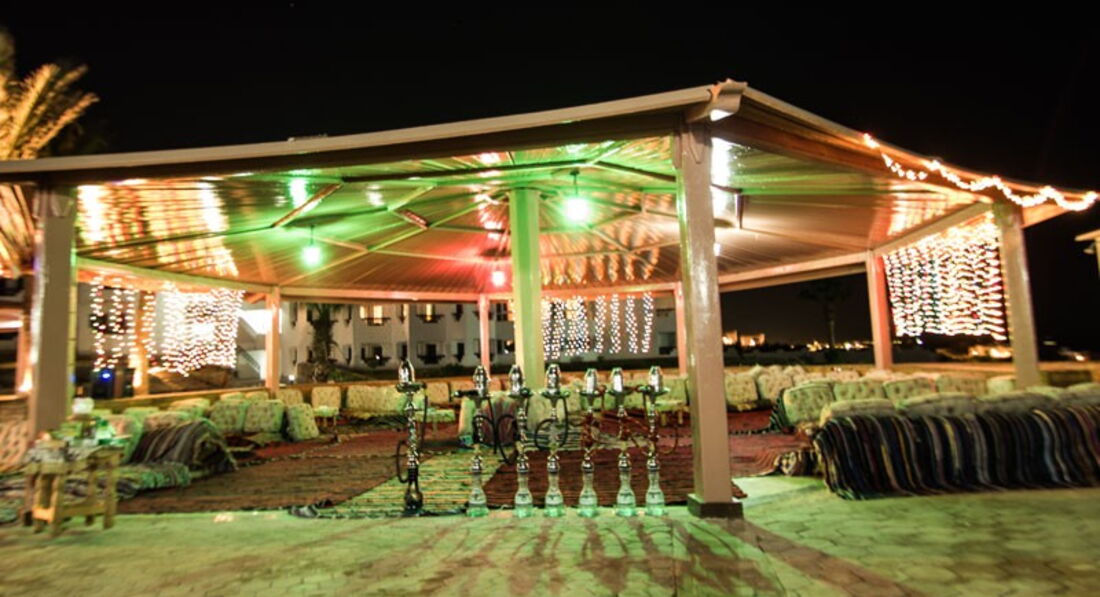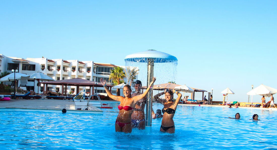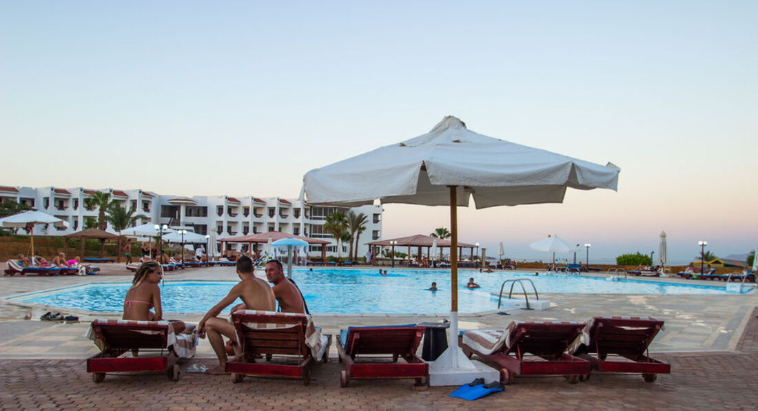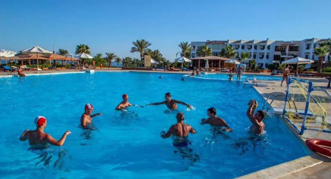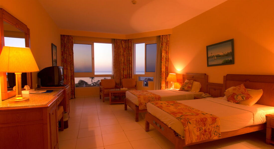 Отель подбирали долго. И выбор остановили именно на этом отеле по нескольким причинам. Конечно же первая линия, свой собственный пляж правда не очень оказался. Ну и конечно стоимость. Встретили нас нормально но на ресепшене ужасно говорят на русском а украинского вообще не знают. Номер у нас был на втором этаже. Номер просторный. В номере две кровати. Большой балкон. Но грязь а точнее пыль нас сильно удивили. Мебели минимум и старая. Постельное белье старое. В ванной комнате плесени конечно нет. Но были сбои с горячей водой и плохо смывал унитаз. Шампуня и мыла нет. Вернее когда спросили то пренесли а изначально не было. Питание. Конечно голодать не будите Но рыба и курица сильно пересушены. Макароны есть невозможно. Да и фруктов немного. Напитки чай кофе нормально но вот соков нет только растворимые типа юпи. Пляж недалеко. Лежаки старые. Пляжный бар работает до четырех вечера. Коктели делать не умеют. А вот перекусить там вполне можно. Рыбок мало поэтому мы брали дайвинг очень впечатлило. А еще сафари. Особенно запомнилось как смотрели на звезды в подзорную трубу и катались на верблюдах. И экскурсия в Каир это вообще бомба. На комфортабельном автобусе. Посмотрели пирамиды, побывали в музее и на выставке попируса. Заезжали на фабрику духов и нас в обед очень вкусно покормили. Причем все не дорого. Все экскурсии покупали у местного гида Mido Bikham его легко найти по имени в соц сетях или через поисковик. Цены в трое ниже чем у отельного гида и сервис оказался гораздо лучше. В отеле конечно есть аниматоры но все вяло и скучно. Хотя компанию найти не проблема отдыхает много людей с Украины. В общем с натяжкой отелю можно поставить четыре балла.
