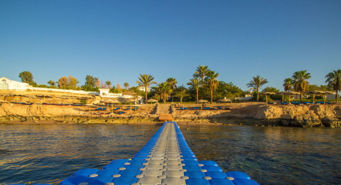 Этот отель с первого дня покорил мое сердце своим сказочным рифом. Такой красоты подводного мира не видела нигде больше!!! Шикарнейший риф, нереальное количество всевозможных рыб, в 3-х метрах от правого пантона живет семья моих любимых рыб клоунов ))) Видела даже рыбу-камень впервые за 11 моих посещений Египта. Есть 2 пантона, так же есть песчаный вход в море для тех, кто плавает не очень. Пляж большой, чистый. Много свободных шезлонгов. На пляже играет музыка . Так же работает бар )) До пляжа пешком минут 5 по ступенькам идти.