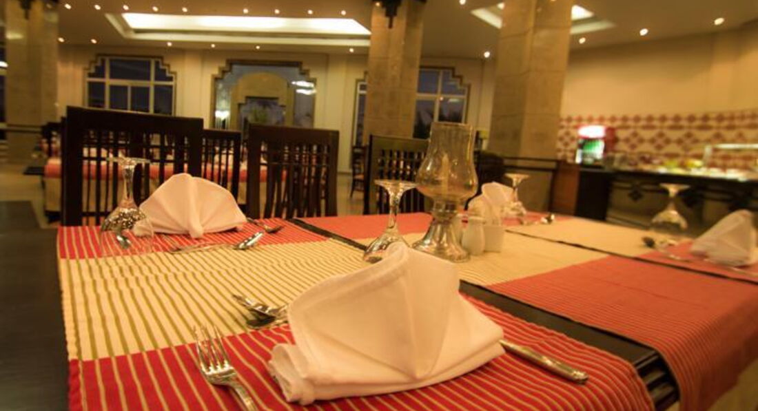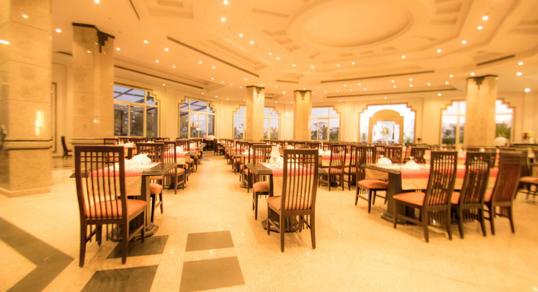В обед и ужин три вида гарниров (рис, макароны с подливой, картофель), резаные овощи, фрукты (дыня, апельсины, финики). Из мясного в обед чаще всего давали печень или курицу, на ужин курицу, скумбрию, колбаски, один раз язык. Все можно брать в неограниченном количестве. С собой на утро на пляж набирали фиников или дыньки. Если кто-то тут писал, что все быстро заканчивается, то это не так. Скорее всего, они приходили кушать в час пик. Мы же шли позже, и в очередях не стояли и всего было навалом. Вода в кулере нормальная, мы её пили постоянно и никаких проблем. Сам кулер просто потрепанный жизнью. Вина в отеле нет вообще, все остальное в неограниченном количестве на обед и ужин. Можно спокойно приносить свою бутылку и сидеть хоть до упора. Не всем, но разрешают выносить еду в тарелках в номер либо в лобби, чтобы продолжить вечер там (волшебный доллар один раз каждому бармену, ну и улыбка тоже творят чудеса). Сдвиги к лучшему к концу отъезда замечены были : повара стали работать в перчатках, не рубили мясо при нас.