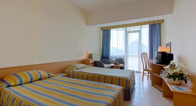 Готель і ще 4 готелі мають одного власника!Тереторія загальна і дуже велика є сосни є корт є багато міні-барів також і на пляжі! все безкоштовно(лежаки,зонтики,вода,коктелі)є 5 великі басейнів і кожен йде в який йому заманеться! їжа смачна і корисна основана на болгарські кухні(бринза,мяса дуже багато)дуже задоволения відносно не великі гроші коштує таке задоволення!