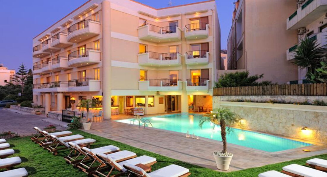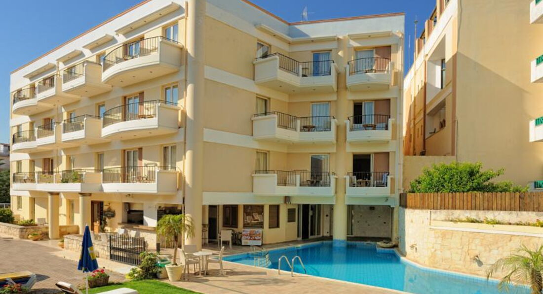 Компактний міський готель у курортному містечку Херсоніссос. У кроковій доступності від готелю магазини, кафе, таверни та нічні клуби. Усі номери обладнані кухонним куточком. Рекомендуємо для сімейного та молодіжного відпочинку.