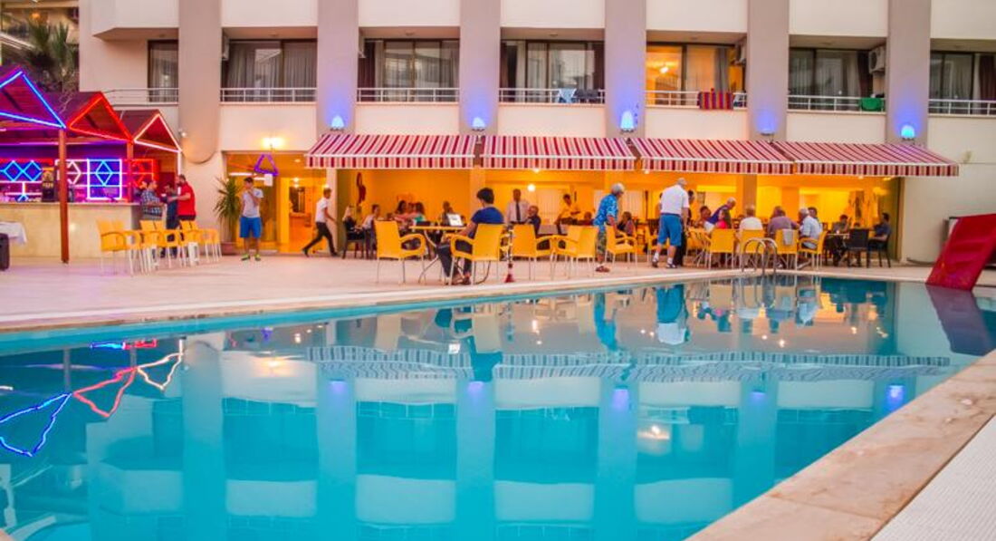 Територія та послуги: • басейни: 2 (відкриті) • біля басейну рушники: платно • біля басейну парасольки, шезлонги, матраци: безкоштовно • водні гірки: 2 • бари: 3 • ресторани: 1 • пральня • лікар за викликом • Wi-Fi платно • магазини Розваги та спорт: • спа центр • перукарня • сауна платно • дискотека безкоштовно • джакузі платно • масаж платно • більярд платно • тренажерний зал безкоштовно • турецька лазня (хаммам) платно • волейбол на пляжі безкоштовно • дартс безкоштовно • водні види спорту платно • настільний теніс безкоштовно • анімація безкоштовно • уроки підводного плавання платно Для дітей: • дитячий майданчик • дитячий басейн: є • дитячий клуб (4-10 років) • послуги няні: платно Живлення: Все включено Пляж: Власний піщаний. На пляжі парасольки, шезлонги, матраци: безкоштовно, рушники: платно.