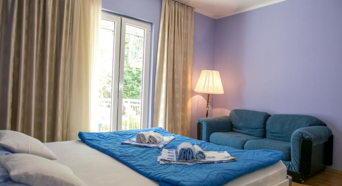 Невеликий готель пропонує 6 номерів. Усі номери знаходяться на другому поверсі. Категорії номерів: