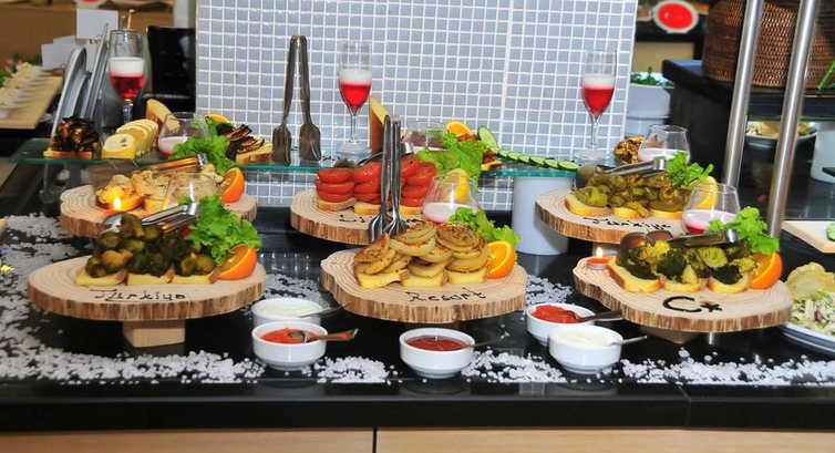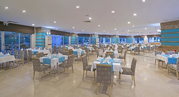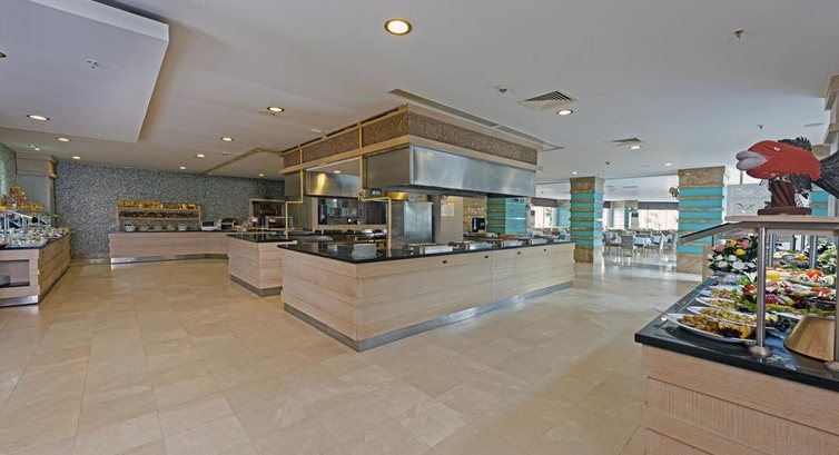 Питание: мне полностью устраивало. Завтрак: несколько видов хлопьев, йогурты, джемы-варенья, яйца во всех видах, булочки, тосты, какая-нибудь каша. Обед: макароны, рис, булгур, различные виды соте, мясо, много овощей. По вечерам блюда на гриле, паста, мороженое. Особенно понравились тематические ужины. То рыбный день, то день итальянской кухни, то турецкой и т. д. Были и суши, и креветки, и свежеразделанный тунец, и кебаб. В общем, объедались всегда. Фрукты тоже всегда свежие и вкусные - яблоки, апельсины, абрикосы, арбуз, клубника. На пляже в баре готовят турецкие лепешки с разными начинками, дают мороженое, вафли. Там же на пляже можно и пообедать.