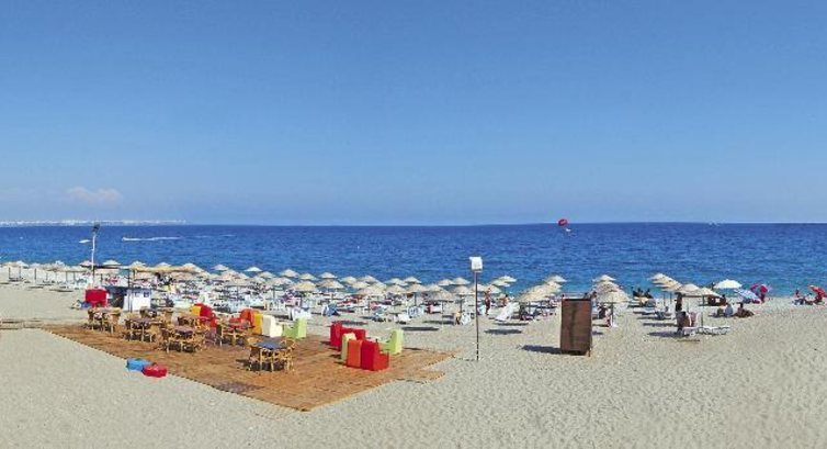 Пляж: громадський гальковий пляж, шезлонги, парасольки, матраци – платно, рушник – депозит, вхід у море – галька.