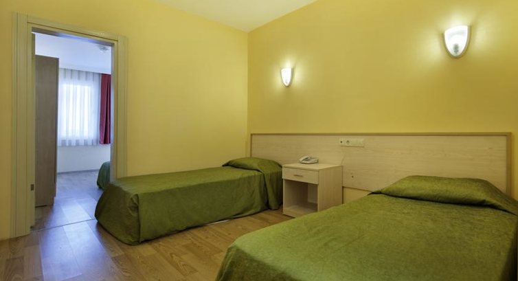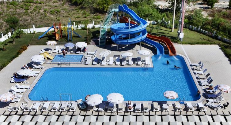 Отель очень маленький, территории практически нет. Чистотой не пахнет нигде, нас заселили в номер над крышей, крыша была очень грязная, номер со старой мебелью, подумали что там вообще не убирались до нас. Еда однообразная, и ее было мало. Рыбу вообще не давали. В баре напитков разнообразия никакого, кофе не варили. Мы даже ходили кушать в ближайшие ресторанчики поскольку на перекусы, кроме печенья ничего не было. на горке за детьми никто не смотрел, хотя это обязательно. Пляж отвратительный, грязный, бар не работал совсем. Пляж галька, при входе в море огромные булыжники. Анимация практически отсутствует, только вечером детская дискотека и на ней одно и тоже. Единственный плюс, что в таком компактном и ужасном отеле мы со многими отдыхающими сдружились и пели песни по вечерам, кстати бар закрывался в 00,00,вечером не кормили совсем. Короче,никому не посоветую этот отель, хуже наших совдеповских. 2,но никак не 4.