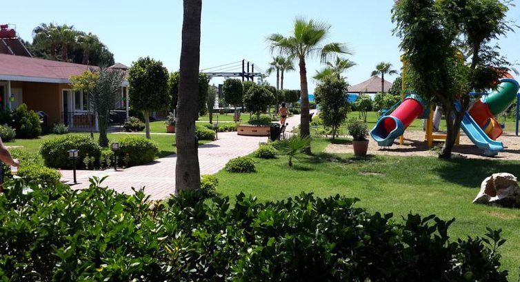 Приехали Тезтуром. Как всегда ехали долго, 2,5часа. На ужин не попали. Ужинали в конаклах в кафе. Расселение просто супер. Отель больше семейный.Нас поселили в бунгало напротив клумбы. Огромный плюс почувствовали впоследствии отдыха: мы спокойно проводили время в номере, правда при открытых дверях, ребенок находился на детской площадке один. Когда надо было приходил сам в номер. Номер нормальный, все работало, кроме как всегда холодильник не морозит абсолютно. И еще минус во всех номерах - нет сушилок. Трусы, полотенца приходится развешивать на перилах. Вайфай есть бесплатный. Еда вполне сносная, за годы отдыха в Турции у нас составилось меню, из нашего меню было все. Один раз была рисовая каша на кефире. Это гадость. И в столовой с солью был дефицит. А так и блинчики пекли, и яичница, и все хорошо приготовлено. Мясо в основном курица. 1 раз можно заказать ужин в рыбном ресторане. Подавали чупру. Рыба вкусная не костистая. Анимация была, но не о чем или мне не понравилась. Рядом диско-клуб, остановка, огромный базар. Мы лично не успели заскучать. Есть детский клуб. Дно в море нормальное. По пути на пляж можно поесть, стоят напитки. Очень вкусный холодный тан. На территории магазинчик с большими ценами.Очень милый отельчик, поеду туда еще раз. Надеюсь попасть еще раз в бунгало :(