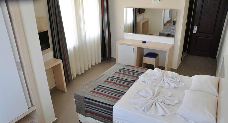 Отдыхали с подругой и дочерью в мае этого года. Встретили нас нормально. Перед заселением нам предложили пойти пообедать. И тут было первое разочарование, еда была вся кислая((((( После обеда нам сразу предложили хамам, но мы были вынуждены отказаться (как позже выяснилось, что от этого много, что зависит), но турок, который "пропихивает" эту услугу, ясным текстом сказал "Мы все равно стресём с вас деньги". За отказ нас заселили в номер с видом на дорогу и соседний отель с овечками и индюками)))) Номер был стандартный, хороший, но туалет с душем напоминали подвал((( очень сыро. Переодевшись, мы спустились к бассейну, где была "гробовая" тишина ( видимо попали в сон час))) и очень много ПОЖИЛЫХ людей загоравших там. Мы были в некотором шоке, такое впечатление, что в пенсионном фонде раздавали путевки на этот тур. Молодежи не было ВООБЩЕ.((((( Даже моя 11-летняя дочь заметила это. Позже многие по уезжали и в отель начали приезжать семьи с детьми. Детей было ОООООЧЕНЬ много. Так же днем возле бассейна иногда стали включать музыку, 80-е модерн токинг))))В первый же наш вечер было "фаер" шоу. Вот тут мы и повесились))))) Аниматор по имени Марио был и ведущем шоу и ди джеем и САМИМ ФАКИРОМ))))) В общем, если вы с чувством юмора, то обязательно посетите это шоу. Кстати, второй аниматор был йогом, ходил по стеклу.))) С ним позже у нас был конфликт, он скинул в бассейн мою подругу, которая внешним видом давала понять, что она, по определенным причинам, одета не для купания бассейна((( Потом мы познакомились еще с одной девушкой, которая кстати получила за 25 долларов (те что она отдала за хамам) номер с хорошим видом на отель и постоянные комплименты от персонала))) Еще, когда у неё обгорел сын, его помазали каким то маслом бесплатно. А когда моя дочь обратилось с УЖАСНЫМИ ожогами к ним, ей сказали "Ты не ходила в хамам, тебе ни чего не положено"(((( Мы были в шоке, это же ребенок.Одним словом ПРОДАЖНИКИ.... Теперь по поводу еды. На завтраки готовьтесь есть только ЯЙЦА. Реально там кроме яиц варенных, жаренных горячего ни чего нет. Есть еще их каша. Это рис залитый молоком((((( Ужасно. Даже одна женщина сделала им замечание, сказала, что она тоже повар и знает как готовятся каши. Так же есть выпечка, вкусная. Персонал в ресторане и баре хороший, приветливый, внимательный, им отдельное "спасибо" за их работу. Ужины там очень понравились. Постоянно жарили то мясо, то рыбу. В общем, кроме завтраков, еда очень даже вкусная и сытная )))) Из напитков местное пиво, вино и даже ШАМПАНСКОЕ. Еще один приятный момент, расположение отеля. Рядом находится рынок, торговый центр "Мегамол" и дискоклуб. Сам отель очень старенький(((....Ближе к отъезду мы пришли к выводу, что если ты умеешь сам себя развлекать, то на все минусы можно закрыть глаза. Отель явно не для молодежи.((((( А вот семьям здесь возможно понравиться. Решайте сами, но лучше переплатить и поехать в 5-ку (кстати этому отели очень многие гости давали 3-ку.)... Удачи Вам в вашем выборе!!!