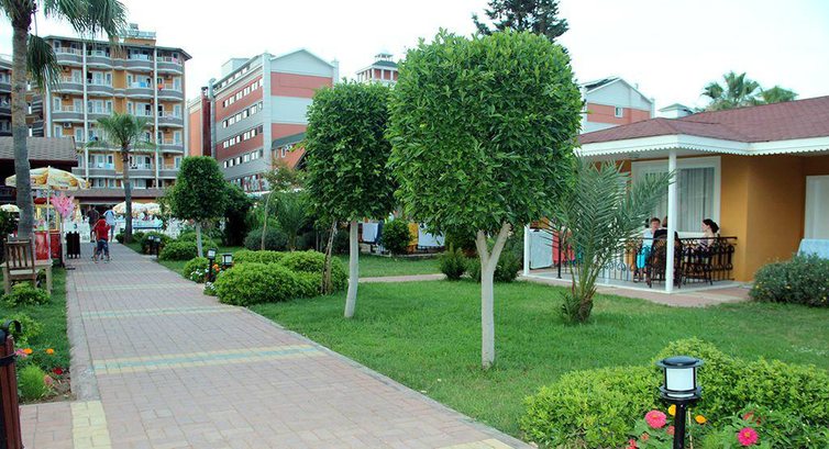Территория ухоженная, есть небольшая аллейка (от жилых корпусов до пляжа) с лавочками. Вообще, если погулять то лучше в посёлок Конаклы, благо, что удобное расположение отеля это позволяет в любое время.