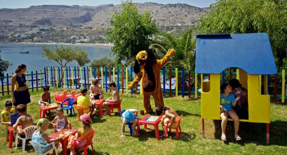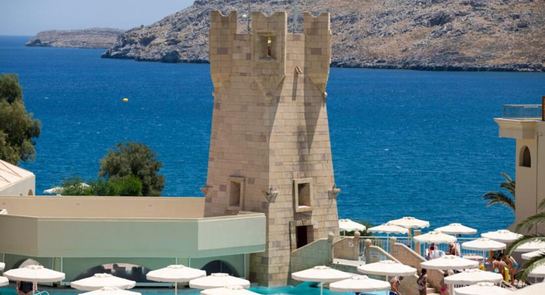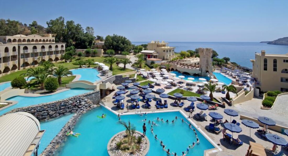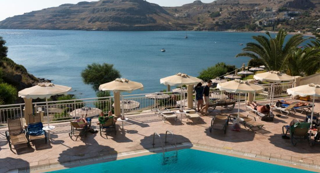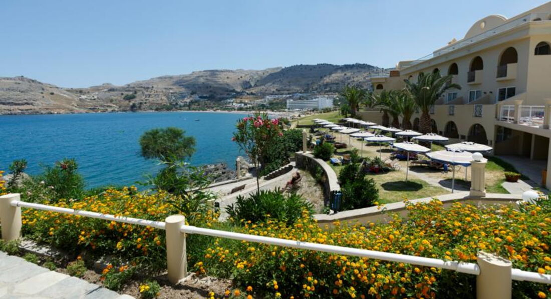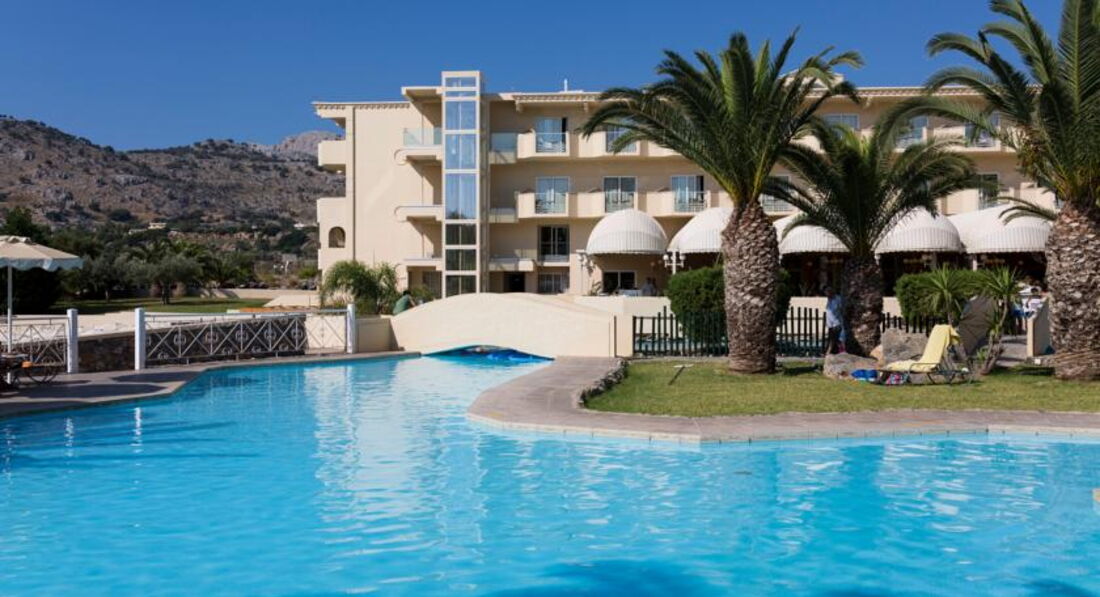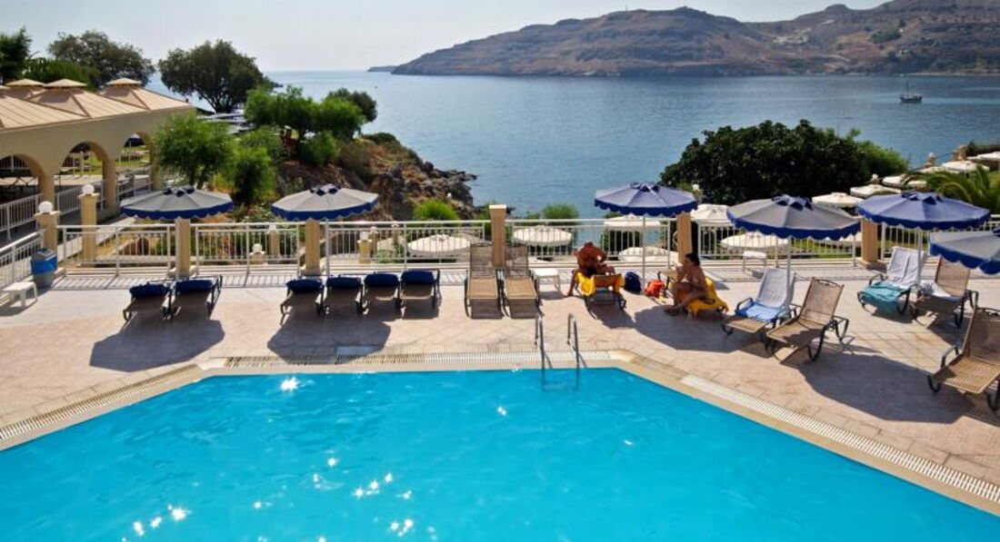 Номери У кожному номері є панорамний вид на затоку Вліха. Доглянута зелена територія. Спортивні програми протягом дня та шоу-програми увечері. Через наявність великої кількості сходів, спусків та підйомів не рекомендуємо людям з обмеженими можливостями пересування. Сім'ям із маленькими дітьми треба врахувати, що до обладнаного пляжу веде спуск із гори. Сусідить із готелем Lindos Village, гості можуть користуватися певною інфраструктурою обох готелів. Рекомендуємо для активного сімейного відпочинку із дітьми.