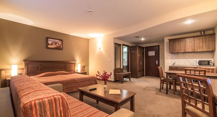 • Apartment (2 спальні: одна з них з двома односпальними ліжками та з кухонним боксом з обіднім столом, мікрохвильовою піччю (не у всіх номерах) та обіднім столом, інша – з двоспальним ліжком, макс. 5 чол., 74 м2)