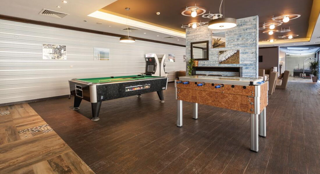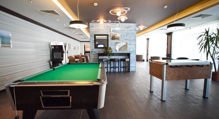 Из развлечений в отеле есть бильярд, настольный футбол, бар, тренажерный зал и Wi-Fi, который ловится только в лобби. Никакой анимации нет. На фото присутствуют компьютеры с играми и интернетом, но на самом деле они давно сломались и от них остались только столы. Так что если вам нужен компьютер, берите все с собой. Вся IT техника в Солнечном берегу родом из 90-х и даже такую днем с огнем не сыщешь.