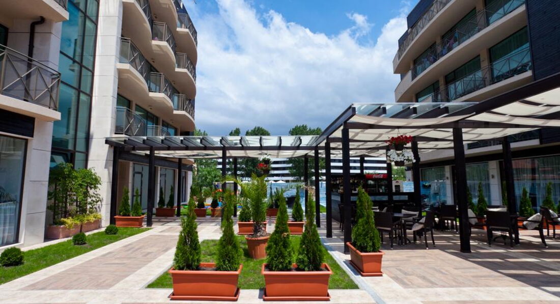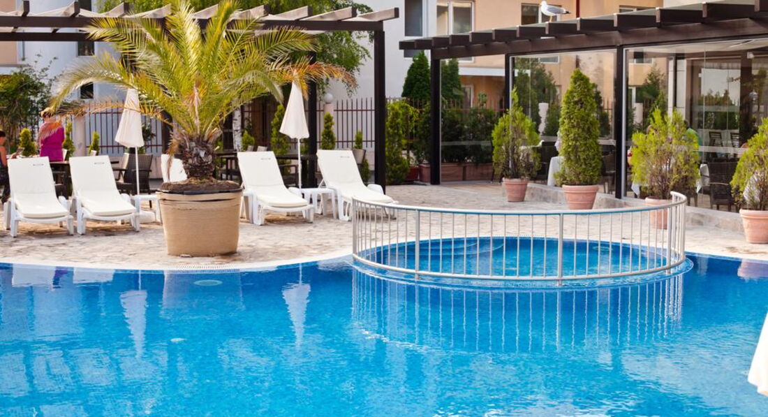 Отдыхали с друзьями и их двумя детьми ( 12 и 5 лет) в конце июня вначале июля . Отель достойный .Красивая и чистая территория.Хороший бассейн.,Очень вежливый и услужливвый персонал. Неплохие номера и сантехника. Нормальная мебель.Жили на 4 этаже в корпусе где ресепшн. Дополнительное место для детей, в номере где жили наши дузья, просто огромное. Весь персонал говорит или понимает по русски.Немного портила впечатление горничная.Убирала нормально,но упорно забывала докладывать туалетные принадлежности.За четыре дня пребывания этого не было сделано ни разу.Пытались решить вопрос сначала с ней.Не получилось. Пожаловались на ресепшн . За две минуты все было решено. Теперь по питанию.Голодными мы никогда не уходили.На завтрак пекут вкусные блинчики.На ужин достаточное количество овощей ,мясо, есть супчики. Много арбуза,черешни.Мороженое без ограничений.Ставлю четверку только потому ,что напитков на ужине нет никаких.Приходилось покупать в баре. Еще мне не хватило чайника в номере.Но в общем отель порадывал.Не знаю захотим ли еще когда-нибудь отдыхать в Болгарии (немного подвела погода), но если да, то этот отель будем рассматривать в первую очередь!