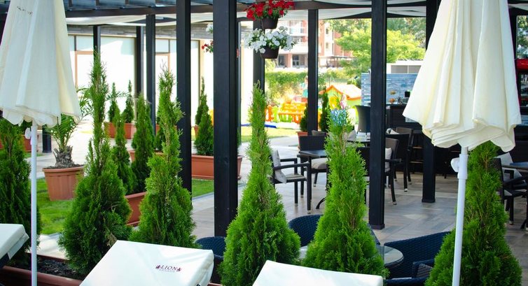 Добрый день! Отдыхали в отеле Лион в июле 2015 года! Двое взрослых и двое детей 4 и 7 лет. Отель выбрали сами и не пожалели ни разу. Отель находится тихом месте, вдали от основной проезжей части. состоит из двух корпусов, на территории два бассейна с детскими отделениями. Рускоговорящих туристов мало в основном немцы, поляки, и вроде как англичане. Приветливый персонал (встретили прямо с автобуса, взяли чемлданы, провели на рецепшен, все расказали показали). Заселение заняло минут пятнадцать. Номера чистенькие и аккуратненькие. В номере двуспальная кровать, телевизор (рускоязычный канал один и нет мультов, если надо вдруг занять ребенка ), диван, холодильник (с напитками за отдельную плату), кондиционер. Убирали каждый день, полоценце и постельное белье меняли раз в три дня. Вай-фай в номере брал плохо (номер на третьем этаже), зато отлично ловил в коридоре и в холле первого этажа. Питание отличное, каждый может для себя что-то найти, особенно это важно если ваше чадо не знает как всегда, что оно будет есть. Завтраки :каша, отмлет, яичница, овощи, фрукты, творог, сыры, колбасы, сосиски, жареная колбаса и бекон, хлопья 3 видов, блинчики, йогурт, молоко, мед, гренки и еще какие-то рогалики с сыром или зеленью, напитки только из автоматов. УЖИН: два вида супов, несколько гарниров,(картошка фри, овощи, рис, тушеная картошка), мясо, рыба, макаронные изделия с соусами, но можно попросить простоо макароны с пармезаном, фрукты, овощи, салаты не менее 3 видов, ну и конечно пироженные и мороженое. минус - напитки на ужин только платные из бара рядом, но для меня это было не существенно Рядом ресторан Зеро, если вдруг захочется еще что-то съесть. Порции огромные 350-400 грамм как заявлено в меню, но я ни разу их не осилила.