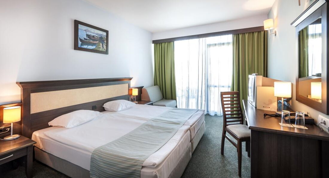 Отдыхали с мужем и парой друзей в конце сезона. Несмотря на это, отель был полон, в основном европейцами. Хорошие номера, все чистое, не старое, хороший ремонт, есть все необходимое. Нам немного не повезло с погодой, было холодно, не на то рассчитывали. С каждым днем закрывалось все больше заведений, многое уже не работало, все это создавало грустную атмосферу, из чего мы сделали вывод, что в Болгарию нужно ехать только летом, в разгар. Зато мы арендовали автомобиль рядом с отелем (прокатов много) и объездили на нем много городов, все самое интересное, даже в Софию с ночевкой сгоняли. Много увидели) но расскажу все же про отель. Кормили шикарно - завтрак и ужин, всегда большой выбор блюд, готовят вкусно. Свежие фрукты, много десертов. Пару лишних кг точно привезли домой)) Напитки платно, но это Европа) убирали каждый день, за редким исключением. В номерах тихо, и очень приятно находиться. На пляже нам удалось побыть только один день - последний, когда распогодилось. Лежаки платные. В море полчища медуз! Но может так попало просто.