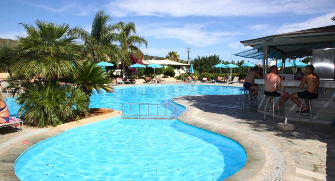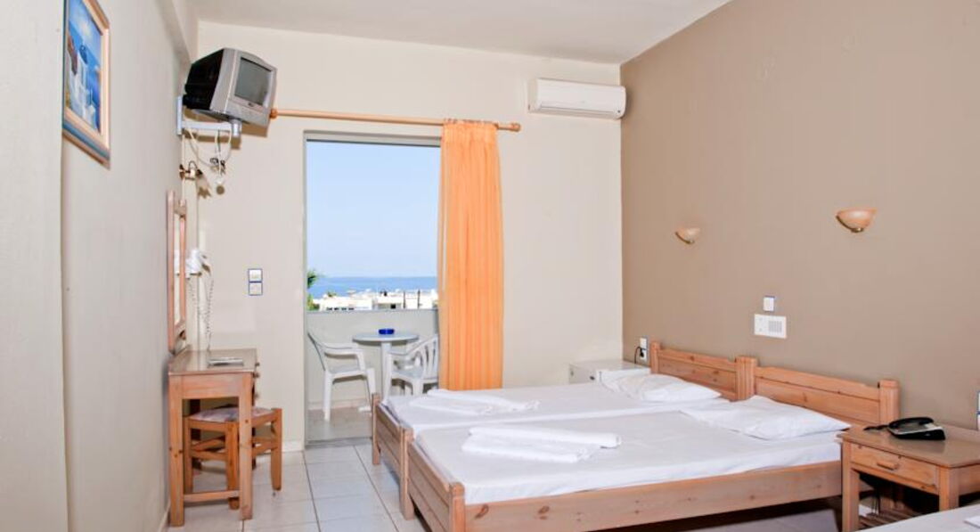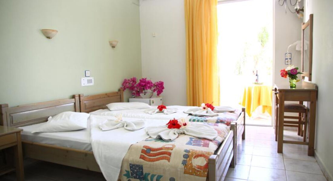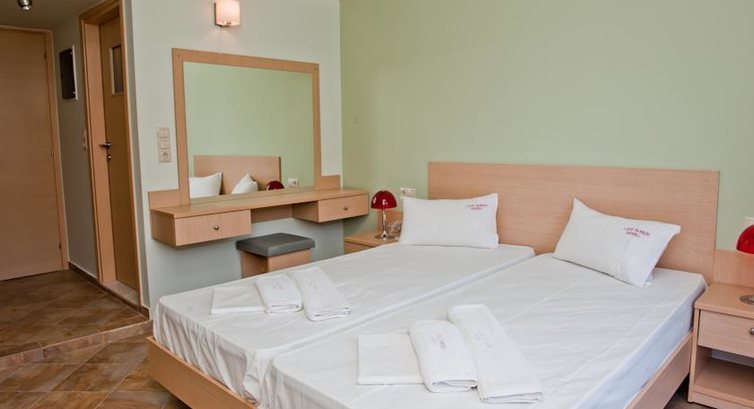 Знаходиться в 800 м. Вартість 2 шезлонгів та 1 парасолька на пляжі становить ~8 євро. Пляжні рушники готель не надає.