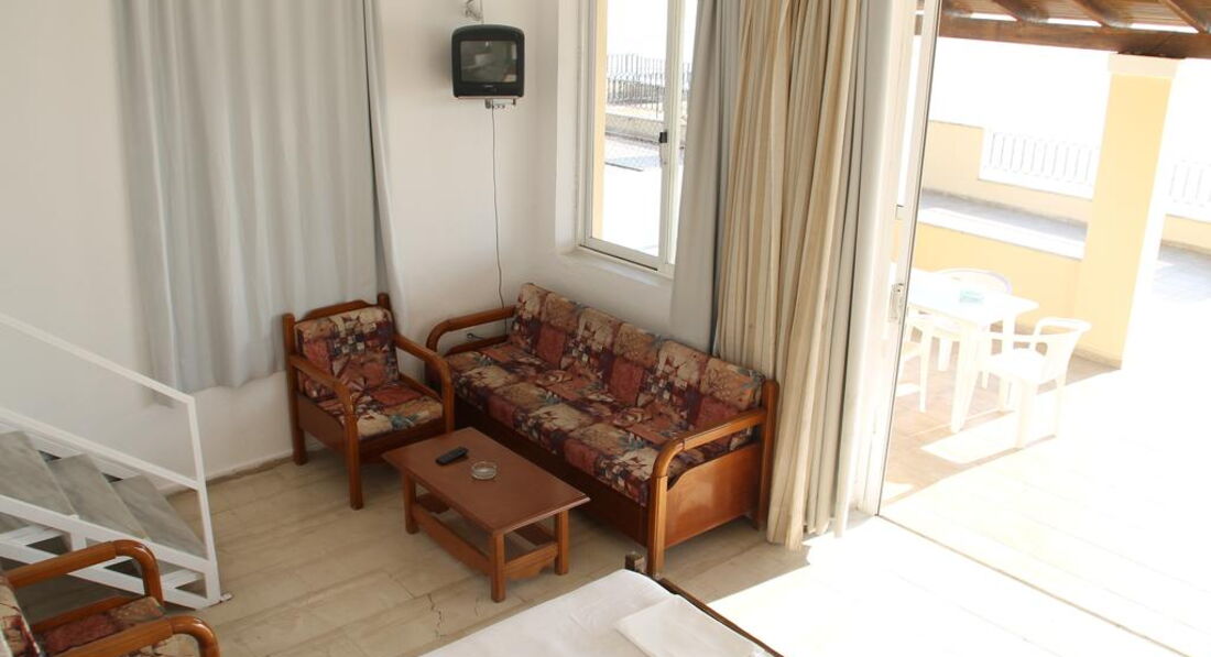 Типи номерів: apartment (3 pax) (осн. ліжко – 2 односпальні, дод. – односпальне, макс. 3 чол., 25 м2), apartment (4 pax) (осн. ліжко – 2 односпальні або двоспальне, дод. – 2 односпальні макс. 4 чол., 40 м2), apartment (6 pax) (двокімнатний номер, осн. ліжко – 4 односпальні дод. – двоспальне ліжко, макс. 6 чол., 45 м2)У номері: електричний чайник сейф: на ресепшн, безкоштовно зміна білизни: 3 рази на тиждень банні приналежності кондиціонер: є (безкоштовно) зміна рушників: 3 рази на тиждень прибирання номера: 3 рази на тиждень підлога: керамічна плитка міні-кухня ТБ: супутникове балкон душ Інтернет: Wi-Fi, безкоштовно міні-холодильник (безкоштовно)
