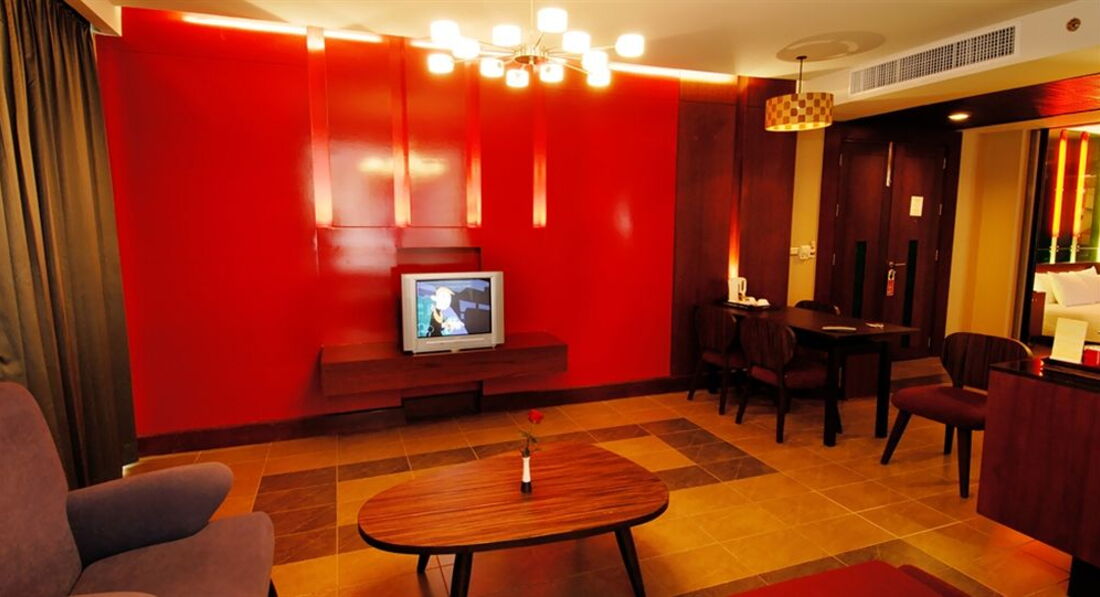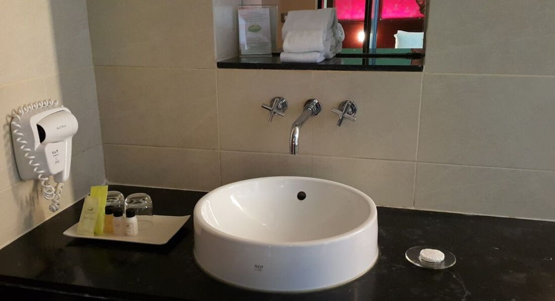 В отеле разместили до 14-00. Жили в корпусе делюкс. Номер был большой двухкомнатный. Мебель старая, ТВ тоже старые (у нас было их два). В номере два санузла, в гостиной раковина и было удобно мыть фрукты.