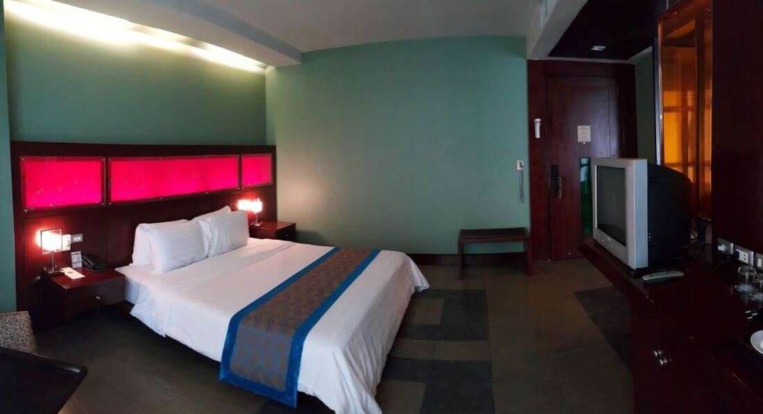 Отель нам очень понравился-разместили очень быстро,уборка в номере ежедневно(меняют постель,полотенца,моют пол,пополняют гель,шампунь,лосьон и мыло,а так же воду, чай,кофе,сахар,сливки)В номере есть сейф,сланцы,халат,зонты.По телевизору 2 русских канала.
