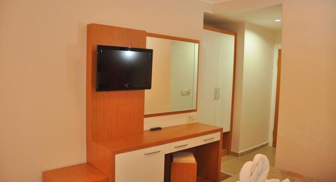 Хорошее расположение отеля - до очень красивого пляжа Клеопатры 3-5 минут пешком (сам пляж бесплатный, но лежаки и зонтики платно), до центра города и дискотек - 20-25 минут пешком.