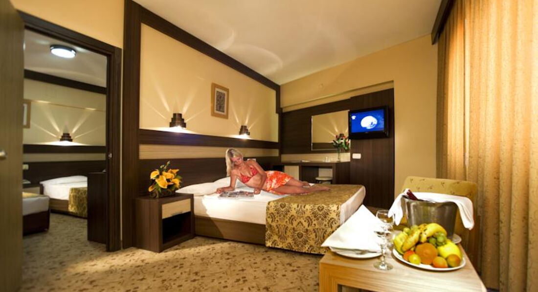 Заселили в номер люкс. Номер шикарнейший, идеальное соотношение цены и качества. Такого комфорта давно не встречала. Вид из окна восхитил. Отдельно расскажу о питании. В ресторане было огромное количество еды-мясо, рыба, вкусные овощи с ароматом овощей, а не пластмассы, как в наших российских магазинах. И одних видов булочек было 10! Напитков много-соки, даже томатный сок, коктейли вкусные. Особенно молочный!) Всегда за добавкой подходила. Все необходимое для классного отдыха при отеле есть. Горки, детские площадки, 2 бассейна, детский бассейн, хаммам, фитнеcc(ходила). Анимационные программы насыщенные и интересные, не дадут соскучиться. За покупками в поисках сувениров и местной экзотики ходила,забавлял торг, тут лучше не брать какие-то вещи по ценам, названным в первый раз,лучше торгуйтесь. Ходила в дельфинарий-там шоу дельфинов и морских котиков. Брала в Тони министер. У них хорошие цены, советую. Еще советую в более дальние экскурсии-та же Каппадокия брать с собой питьевую воду. Ну и активно пользоваться всеми услугами отеля,чтобы отдых удался и по возвращении домой у всех было хорошее настроение. Какое было у меня=) Отель рекомендую.