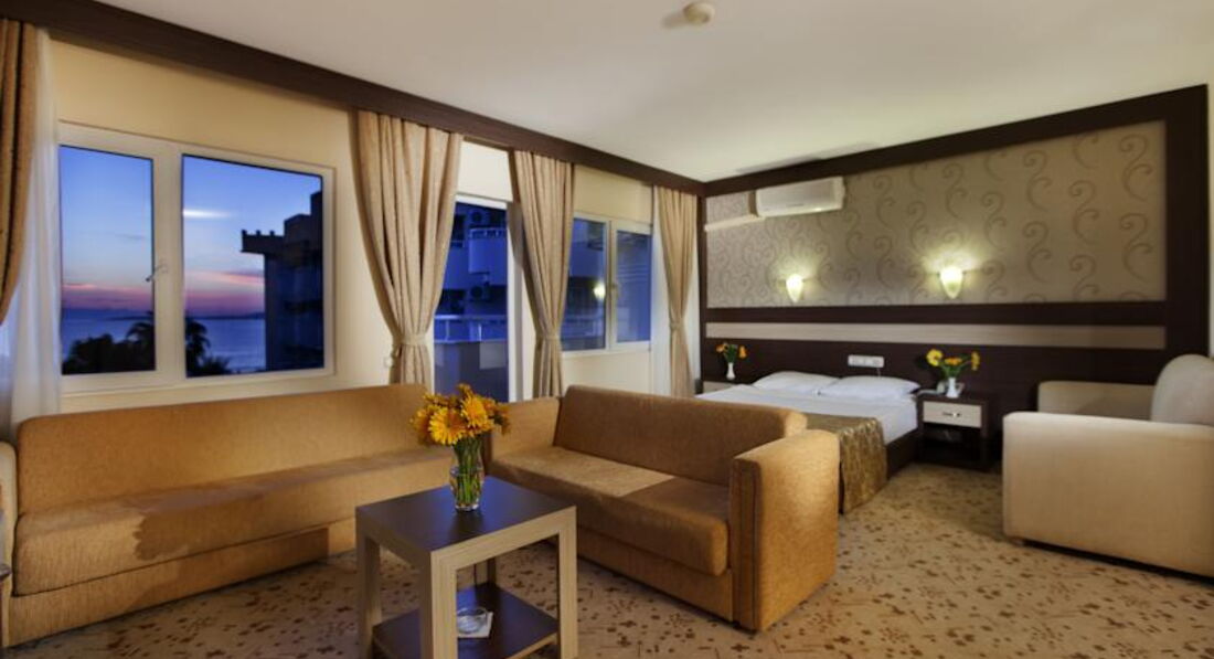 Розташування: Готель знаходиться на самому березі моря, в курортному селищі Авсалар, в центрі Аланьї і в 90 км від аеропорту Анталія.