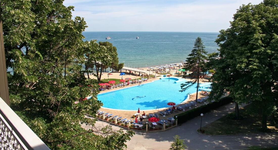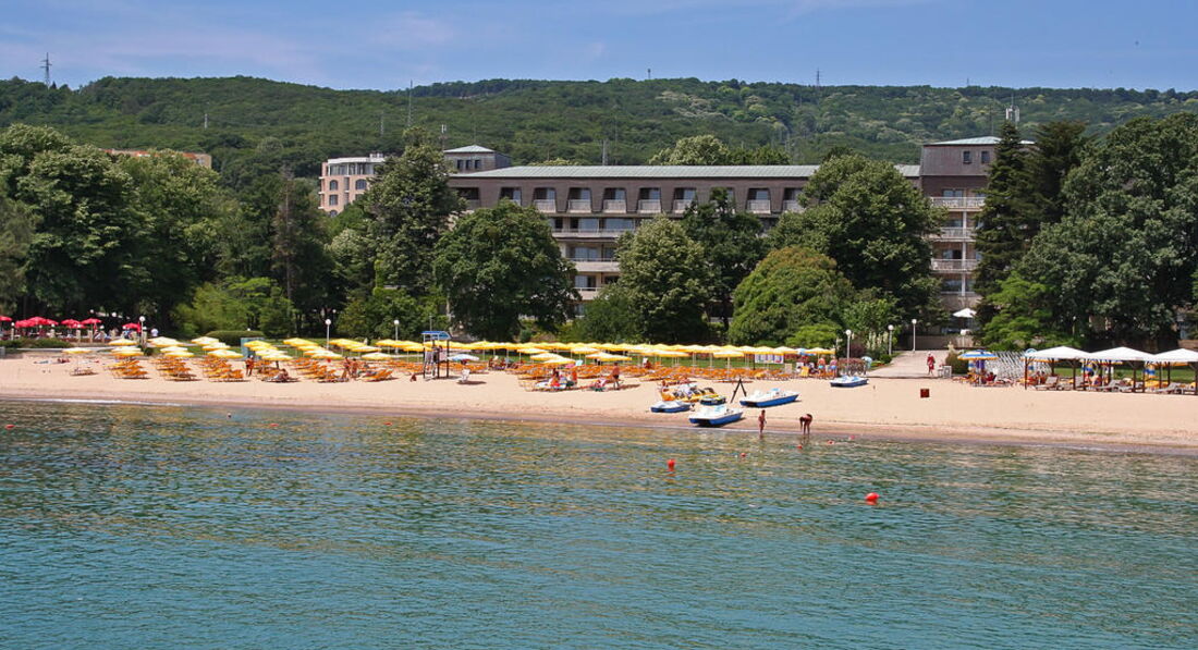Если Вы хотите спокойного , тихого отдыха,особенно если едите с маленькими детьми, то советую ехать на Ревьеру. Ревьера огорожина забором, машины там не ездят, только автобусы, которые завозят туристов. Между отелем и пляжем дороги нет, так что дети могут спокойно бегать по территории. Очень красивое место, утопает в зелени, Широкий, чистый песчанный пляж. Чистое море так, как на Ревьере запрещены водные мотоциклы и т. д. У отеля первая береговая линия и все окна с видом на море. Чистый, довольно большой бассейн с детским отделением.Болгары очень хорошо относятся к русским, многие говорят на русском языке, официанты приветливы. На завтрак и ужин есть блюда местной кухни. А если вы решили развлечься, то минут за 7 вы дойдете до Золотых песков.Хотя в отели есть своя аннимация и для детей и для взрослых.