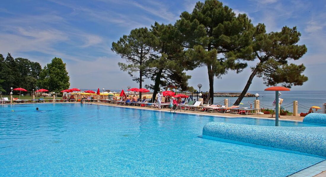 Бассейн: небольшой, есть отдельный для детей. Также мы ходили в бассейн отеля Imperial, он вроде бы с минеральной водой (по крайней мере хлоркой не пахло), но закрытый с открывающейся крышей.