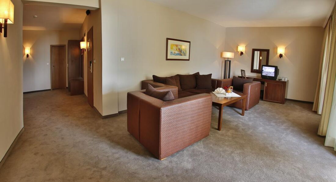 Мы отдыхали в двухкомнатном номере (апартаменты) общей площадью 62 кв. метра с большой лоджией. Номер полностью соответствовал заявленным 4*. Уборка в номере выполнялась ежедневно. При этом менялись полотенца, один раз в два дня менялось постельное бельё. необходимые туалетные принадлежности пополнялись по мере их расходования.