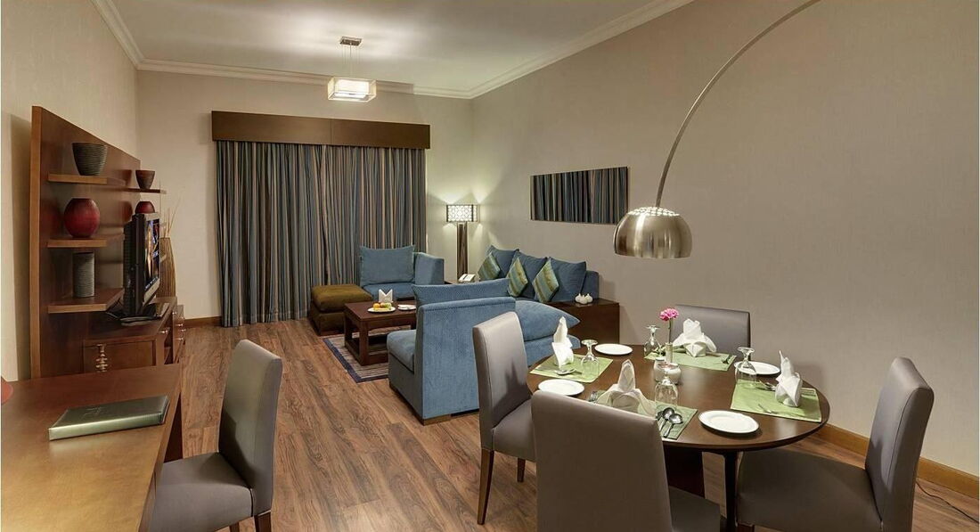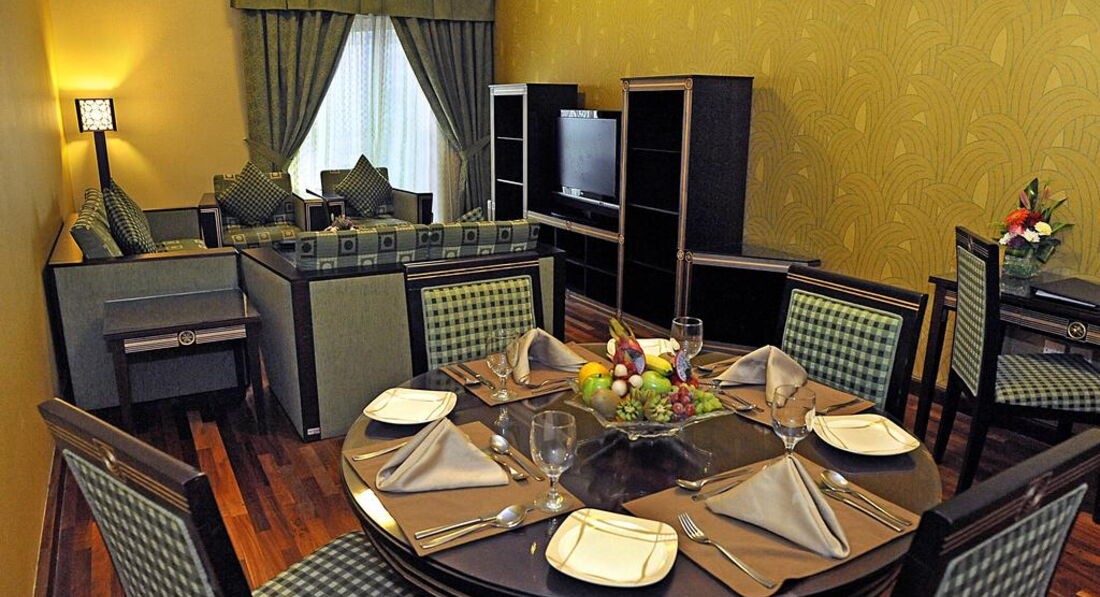 Типи номерів: • 57 One Bedroom Deluxe Apartment – площа: 95 кв.м., максимальне розміщення 3+1, дві кімнати, вітальня, спальня, міжкімнатні двері, ванна кімната, кухня. • 93 Two Bedroom Deluxe Apartment – площа: 125 кв.м., максимальне розміщення 5+2, три кімнати, вітальня, 2 спальні, міжкімнатні двері, ванна кімната, кухня. • Номери для осіб з обмеженими фізичними можливостями надаються інвалідне крісло.У номері: • ванна кімната • халати та тапочки (безкоштовно за запитом) • фен • центральний кондиціонер • супутникове телебачення (музичні канали) • праска та прасувальна дошка (за запитом, безкоштовно) • набір для приготування чаю та кави (безкоштовно) • Wi-Fi (безкоштовно) • сейф (безкоштовно) • прибирання номера: щоденно • зміна білизни: щодня • додатковий сервіс номерів (платно)
